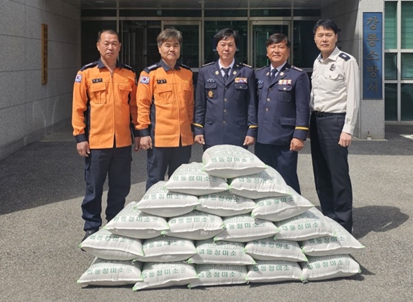 강릉소방서, 사천의용소방대 산불 피해 이재민 돕기 쌀 기부