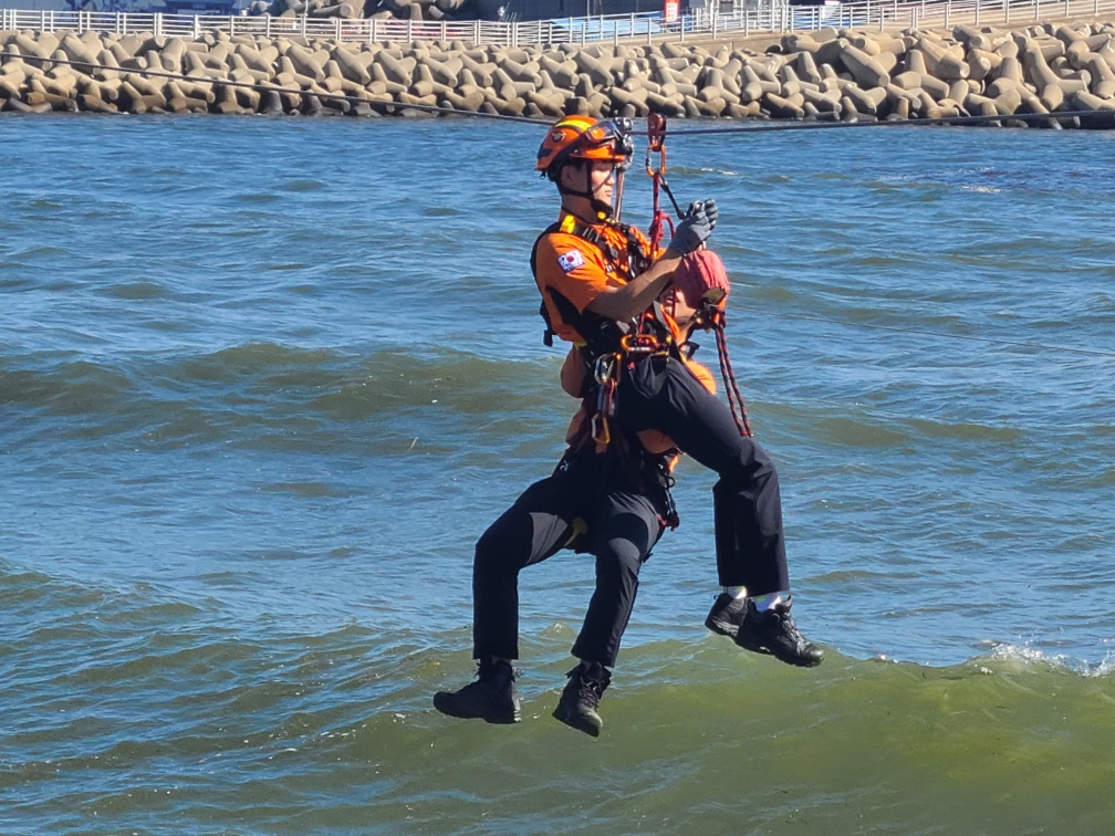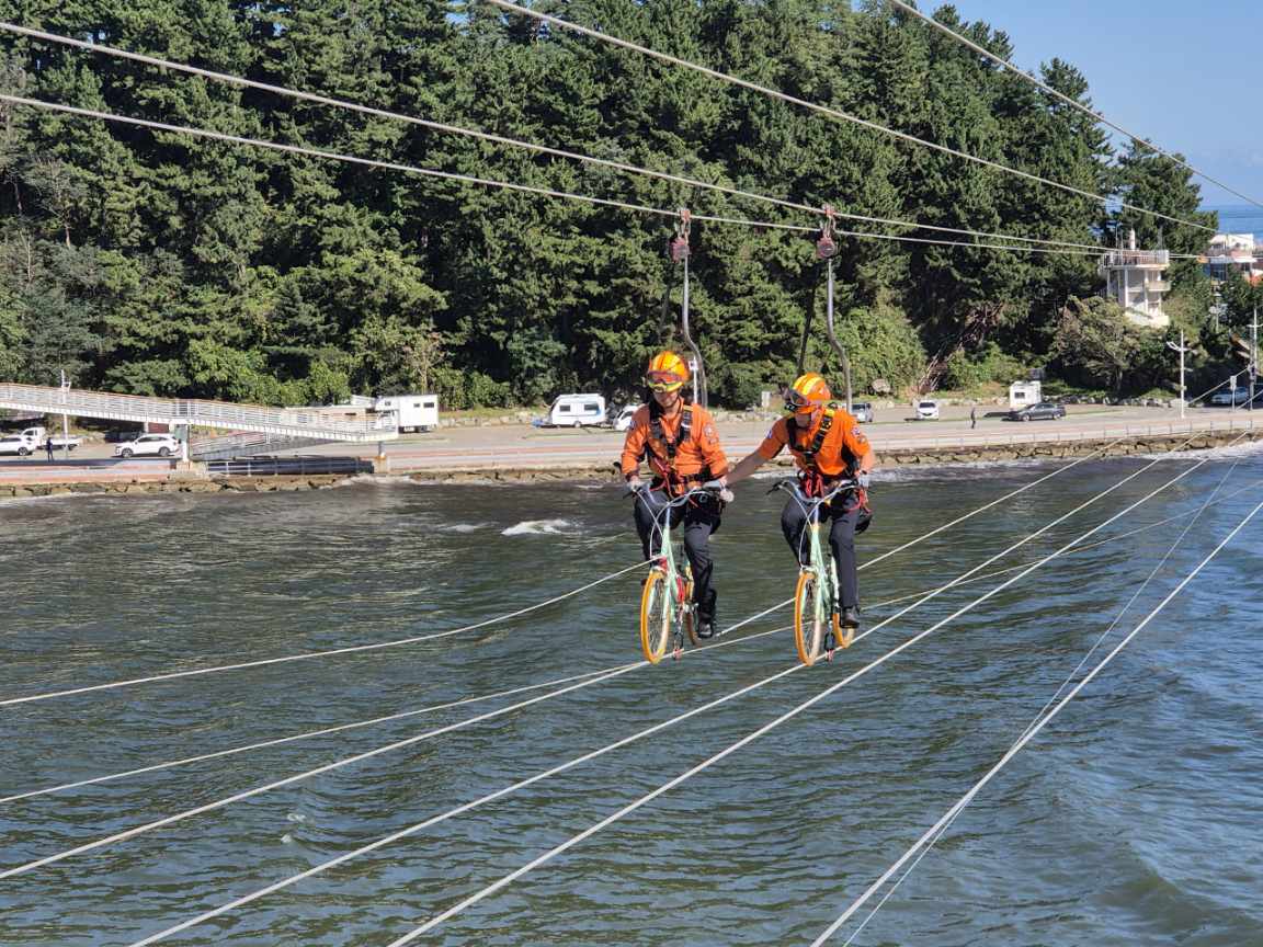 강릉소방서, 집라인 안전사고 대비 구조훈련 실시