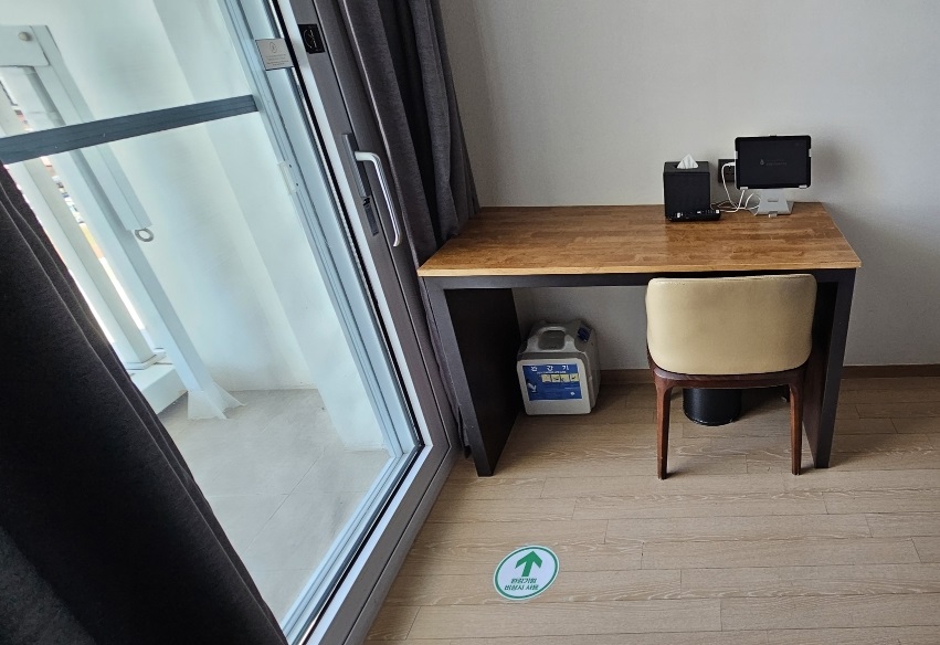 숙박시설 내 설치된 완강기 함 위치를 한눈에 파악할 수 있도록, 바닥에 유도표지를 부착해 긴급 상황 시 신속한 대피를 돕는 것이 목적인데요,