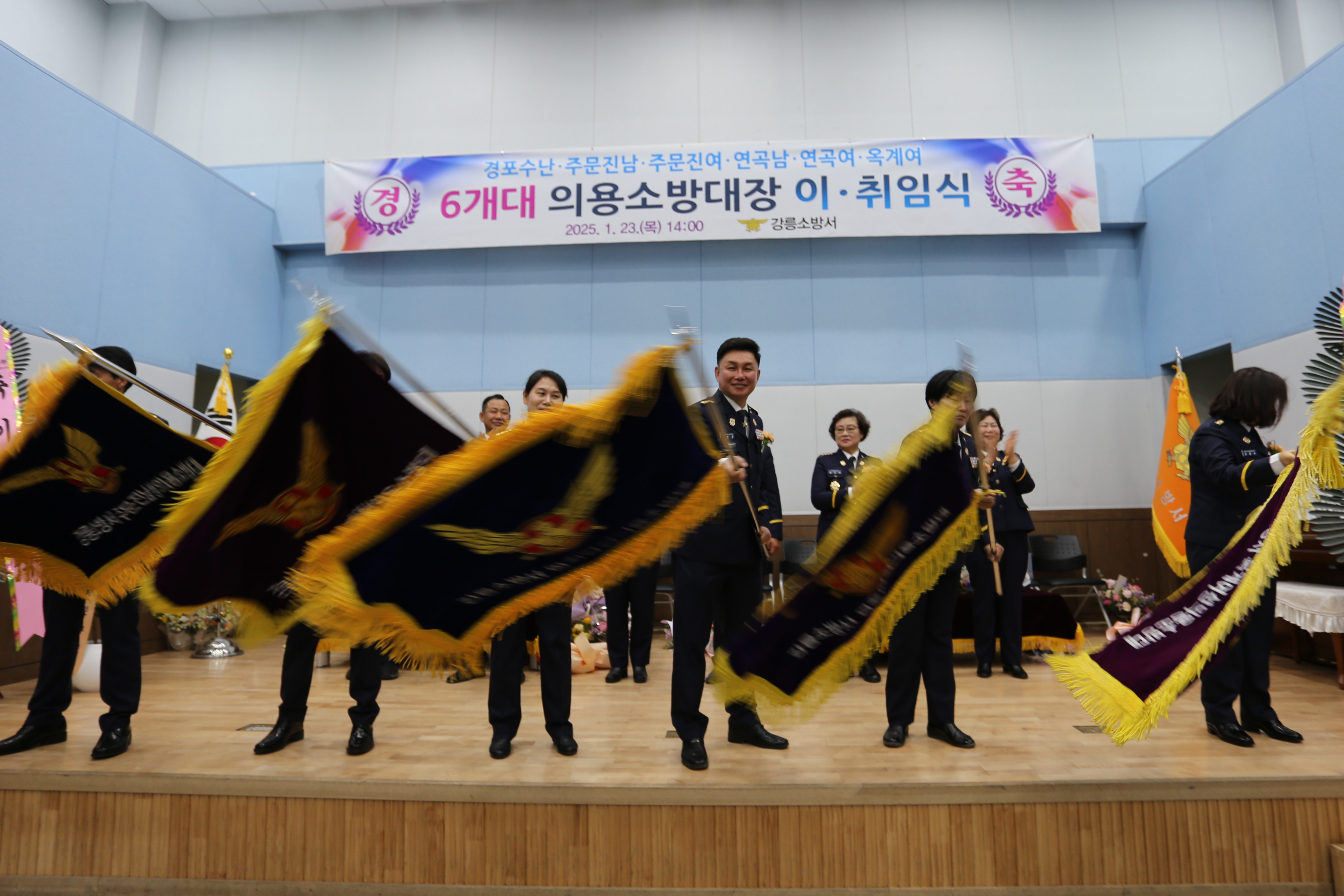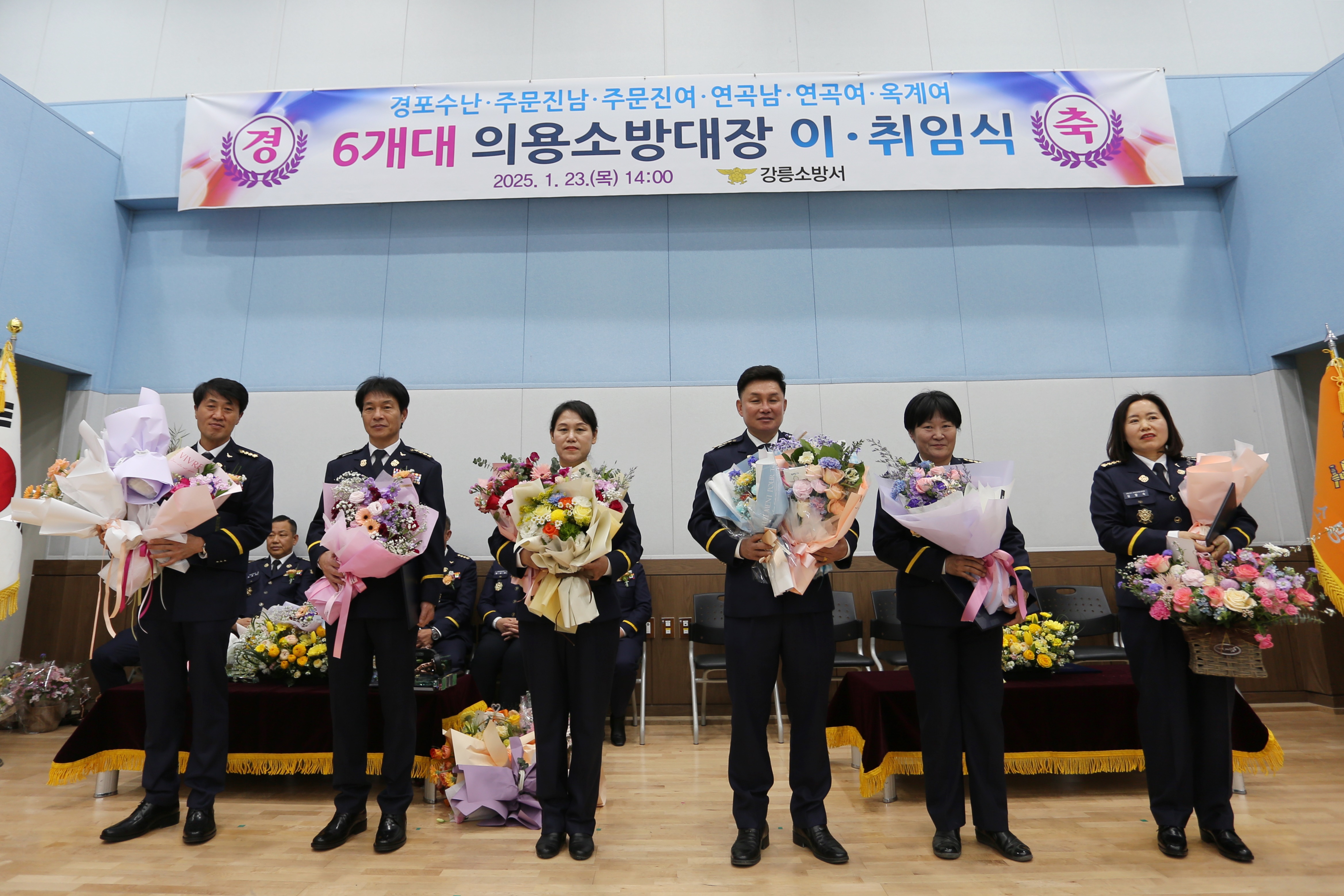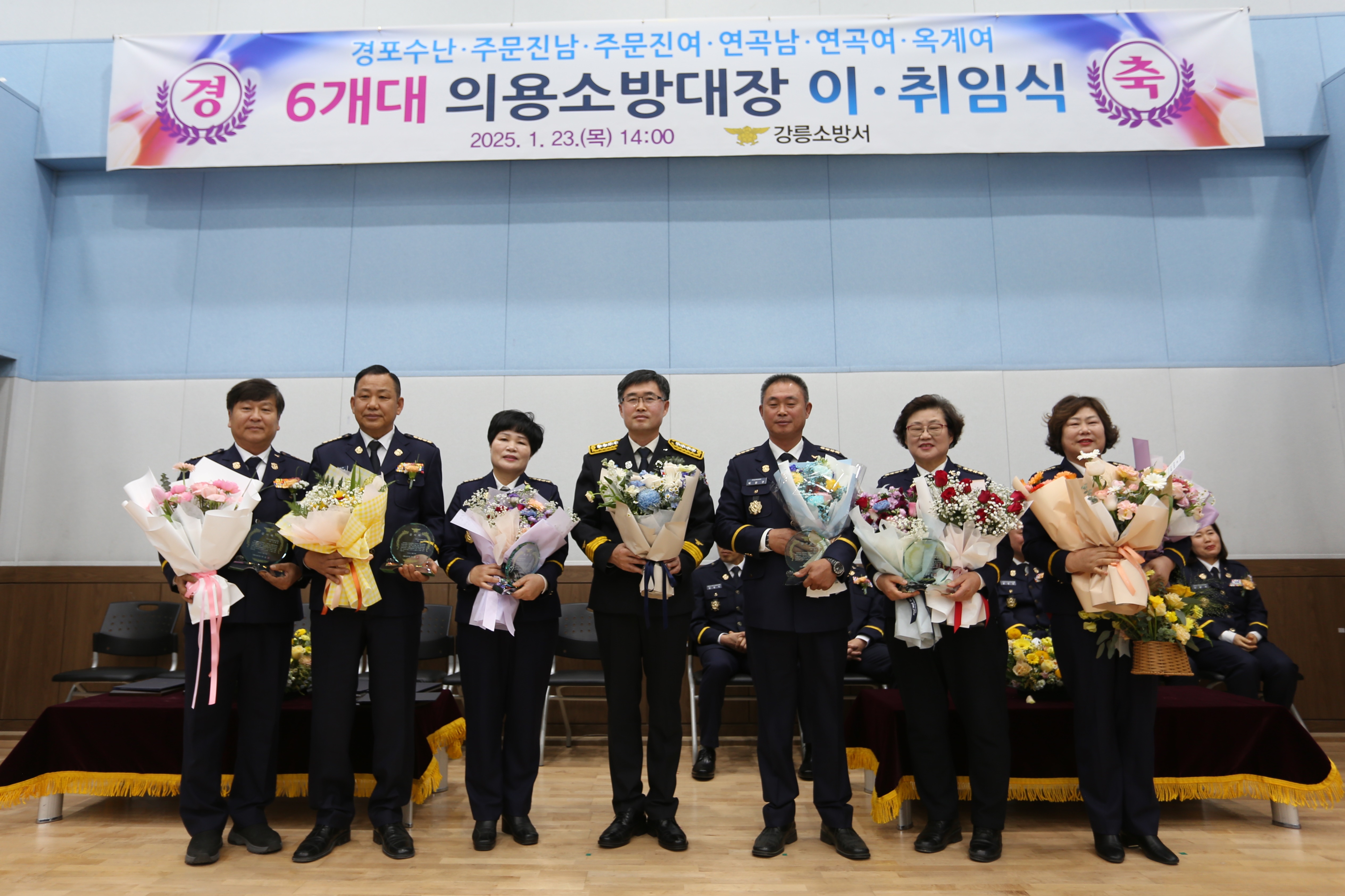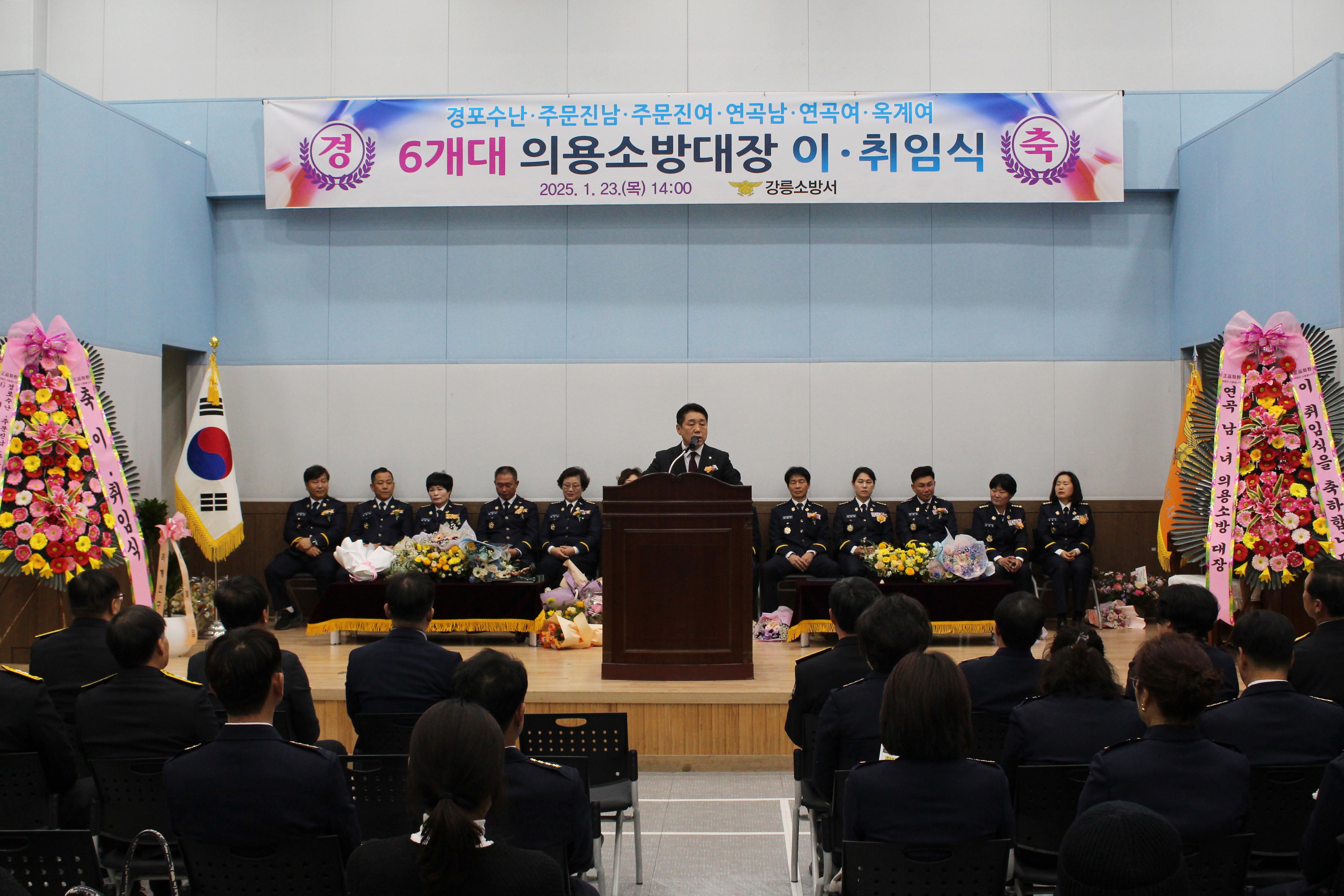 2025년 1월 23일 목요일 오후 2시 강릉소방서 대회의실에서 관내 6개대 의용소방대장 이·취임 행사를 가졌습니다.