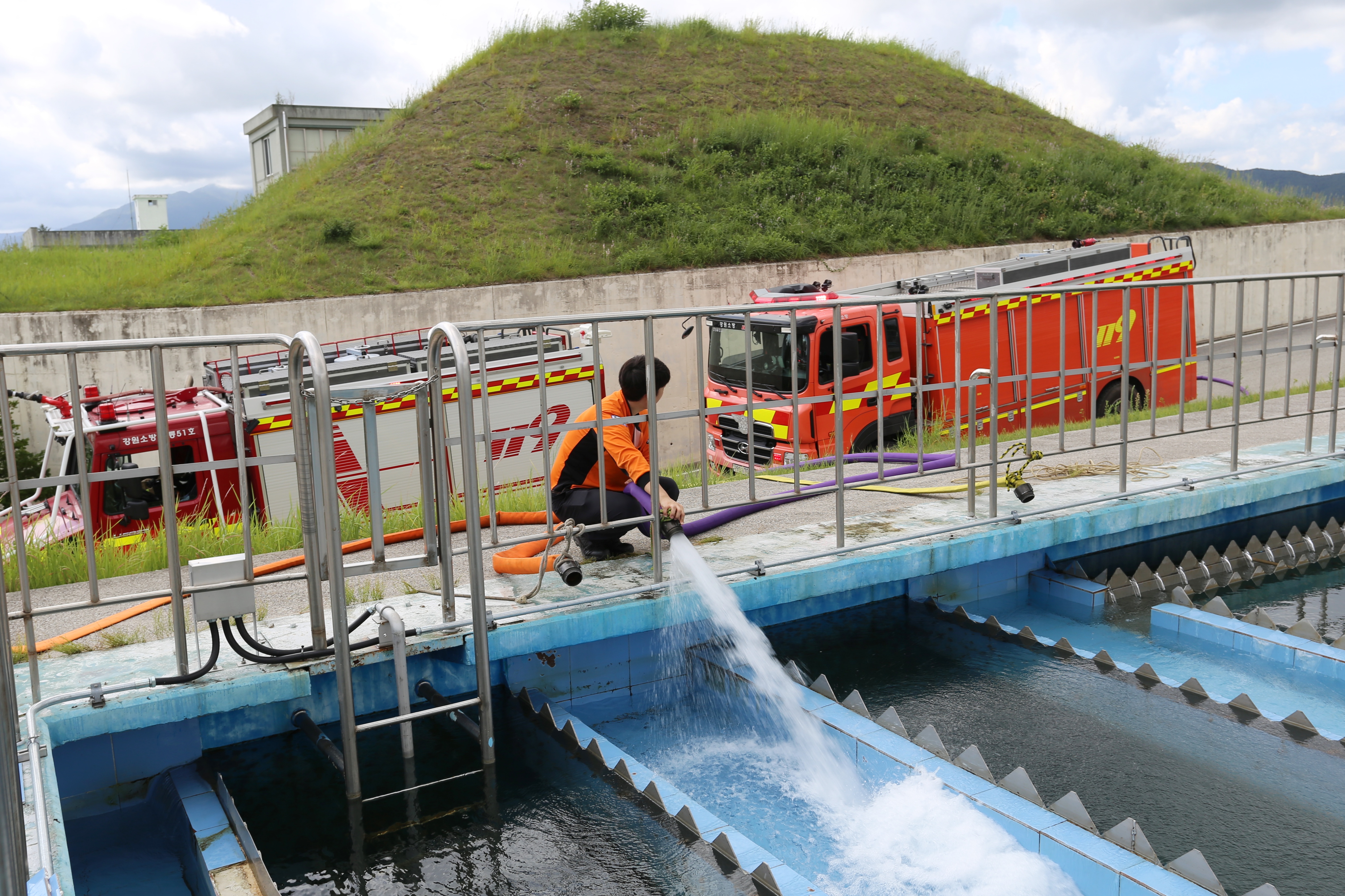 강릉소방서는 가뭄 장기화로 오봉저수지 상수원 공급 차질에 따라 강릉시민 생활용수 부족 문제를 해소하기 위해 영동지역(동해, 삼척, 양양, 속초, 고성, 평창) 소방차량을 활용하여 생활용수를 지원하고 있습니다.