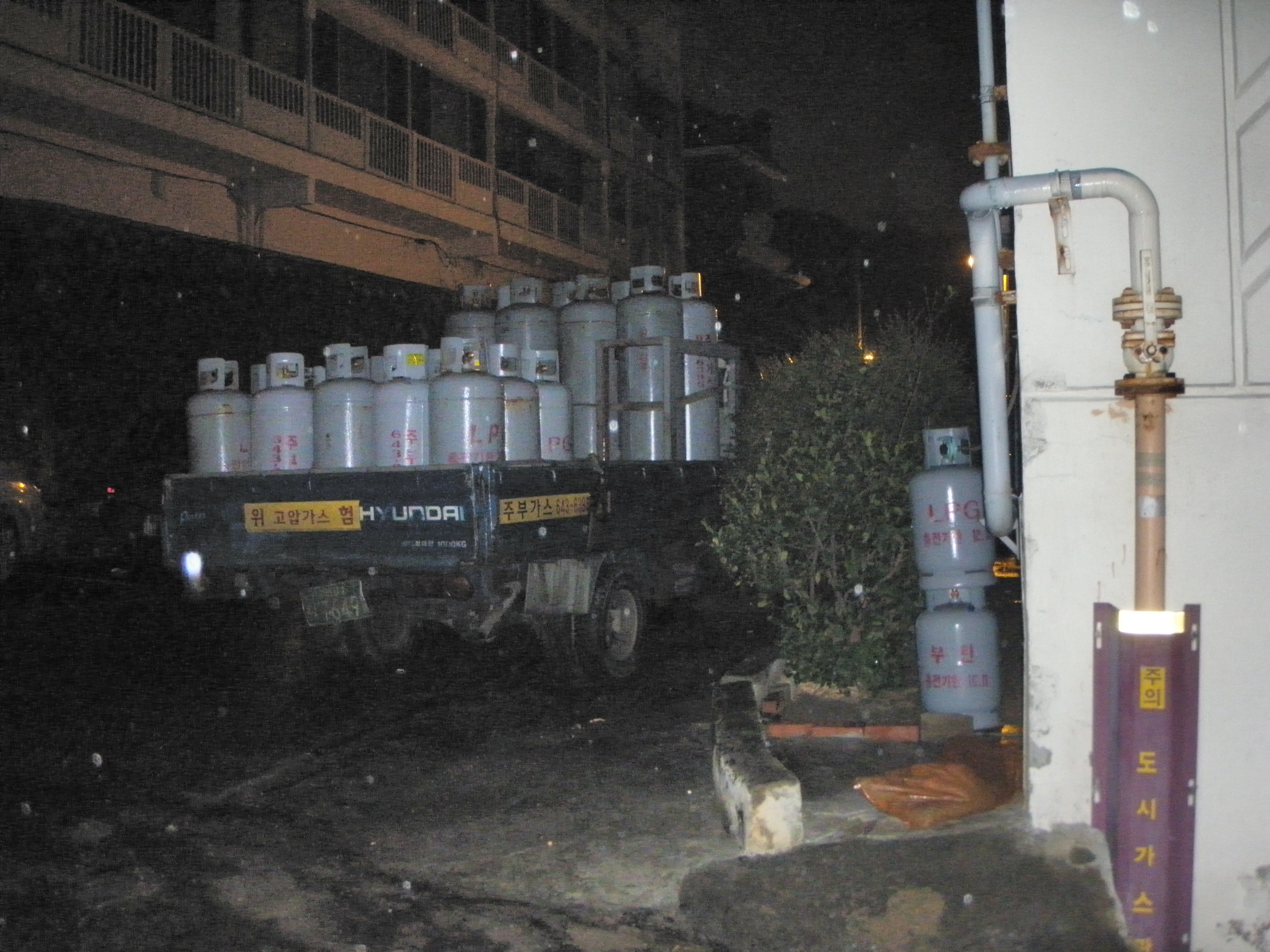 가스배달차가 밤에 아파트앞에 주차하는데