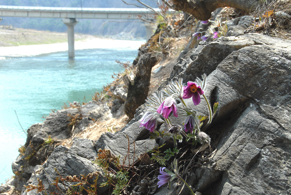 영월 동강의 할미꼴 사진...
