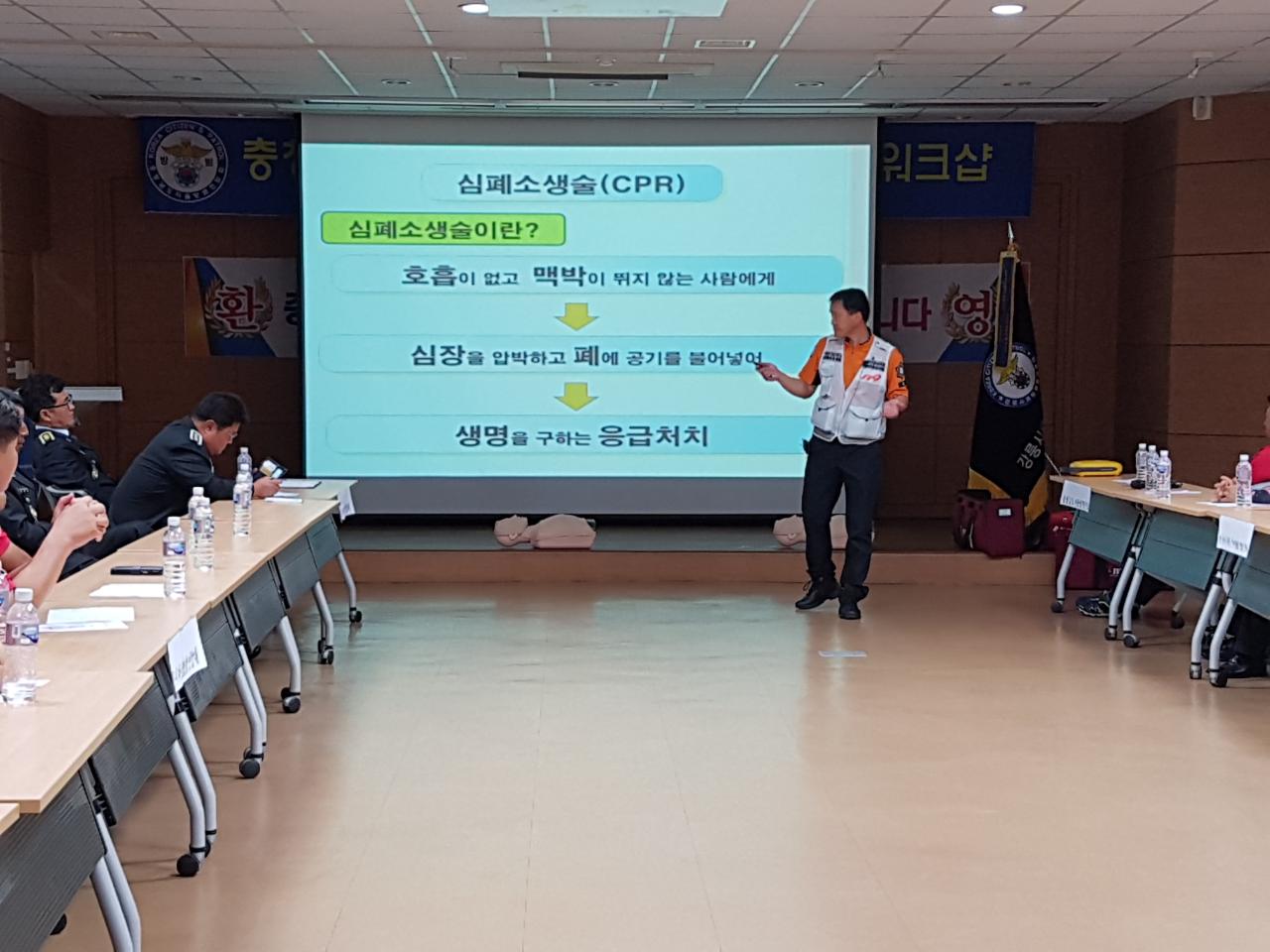 더운 날씨와 지연된 시간속에서도 온화하시고 밝은 목소리로 심폐소생술 교육을 해주신 강릉소방서
