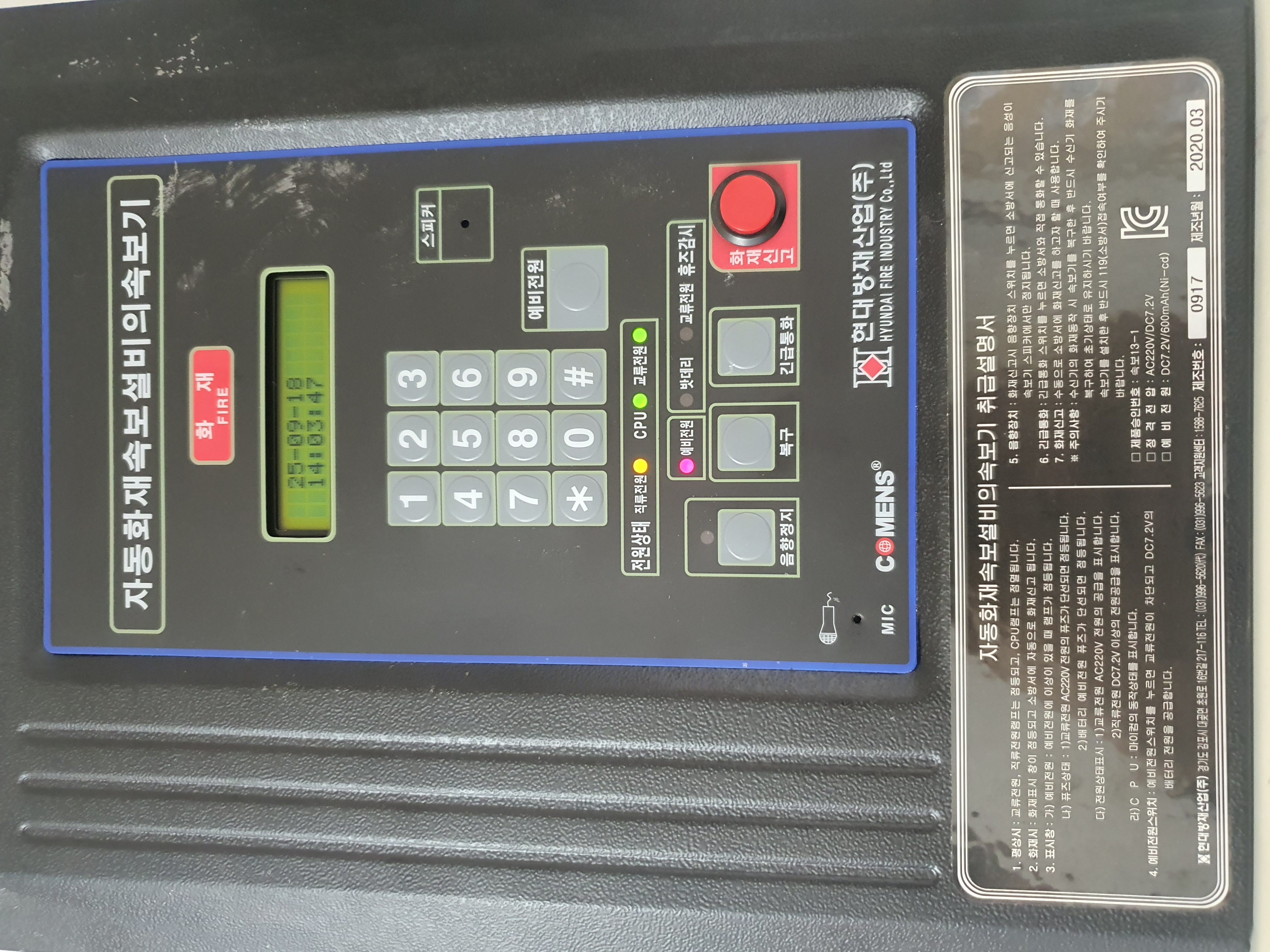 학교시설내에 자동화재속보설비의속보기가 설치되어있습니다.