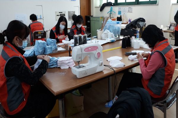 고성군 자원봉사센터에서 주관하는 마스크 제작 봉사활동에 동참하고 있다.