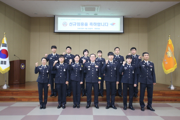 고성소방서(서장 유중근)는 20일 오전 9시 대회의실에서 서내 인사발령자 13명(신규임용 9, 자체 3)에 대한 신고식을 가졌다.