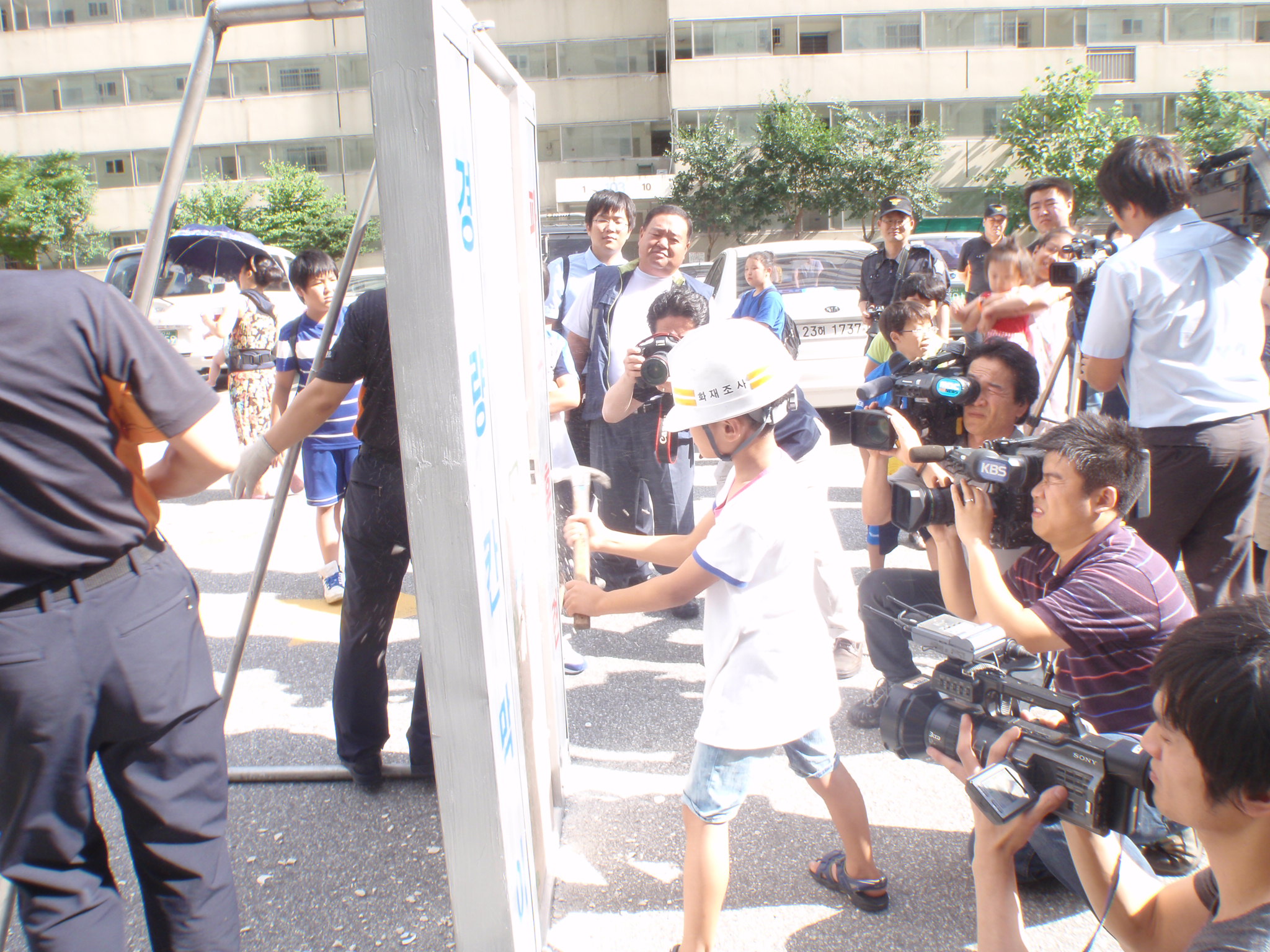 발차기 및 망치를 이용하여 차례로 아파트 경량칸막이를 파괴? 탈출시연회를 실시한 바 경량칸막이에 대한 입주민들의 관심도가 상당히 높았음을 알 수 있었으며, 다시한번 아파트 경량칸막이의 중요성을 일깨워 주었다.
