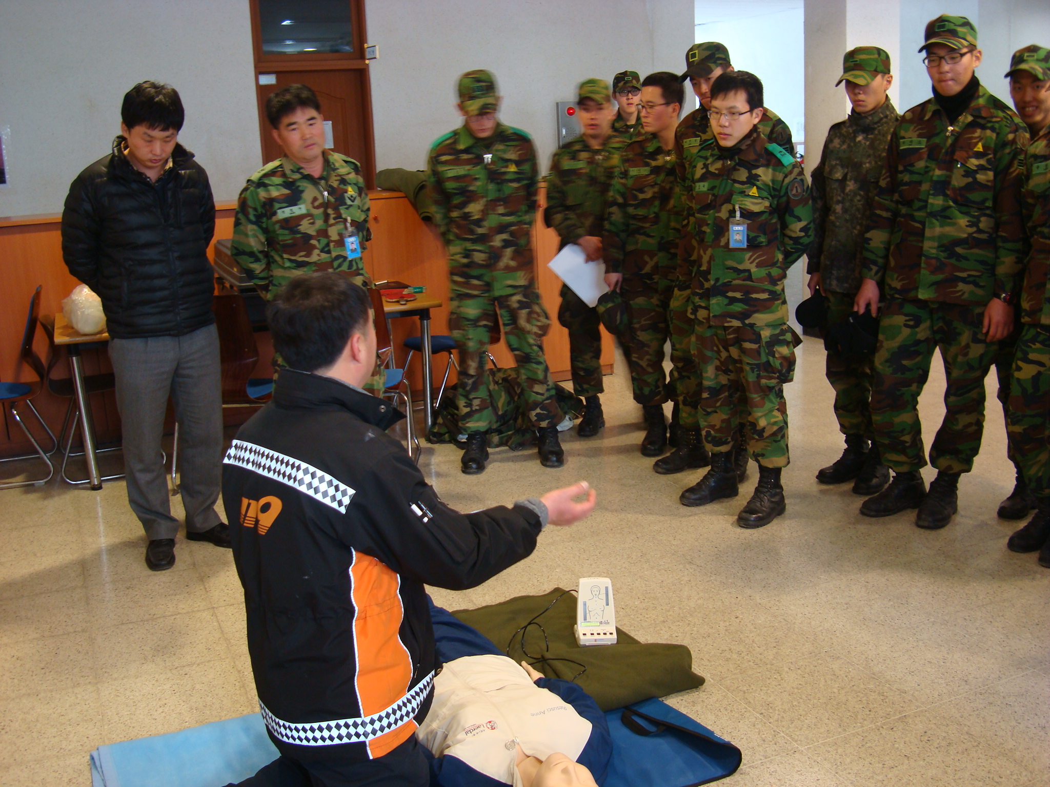탄약대대에 간부 및 병사 40여명을 대상으로 cpr교육을 실시하였습니다. 심폐소생술을 비롯