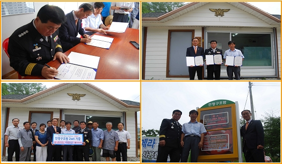 홍천소방서(서장 이종진)는 북방면 도사곡리 마을(이장 한용수)과 하이트진로(공장장 최윤호) 와 1촌1사1관 공동추진,상호협력으로 물놀이 사고 위험지역의 예방과 안전을 위하여 인명구조함 및 적재장비 기증식을 가졌다