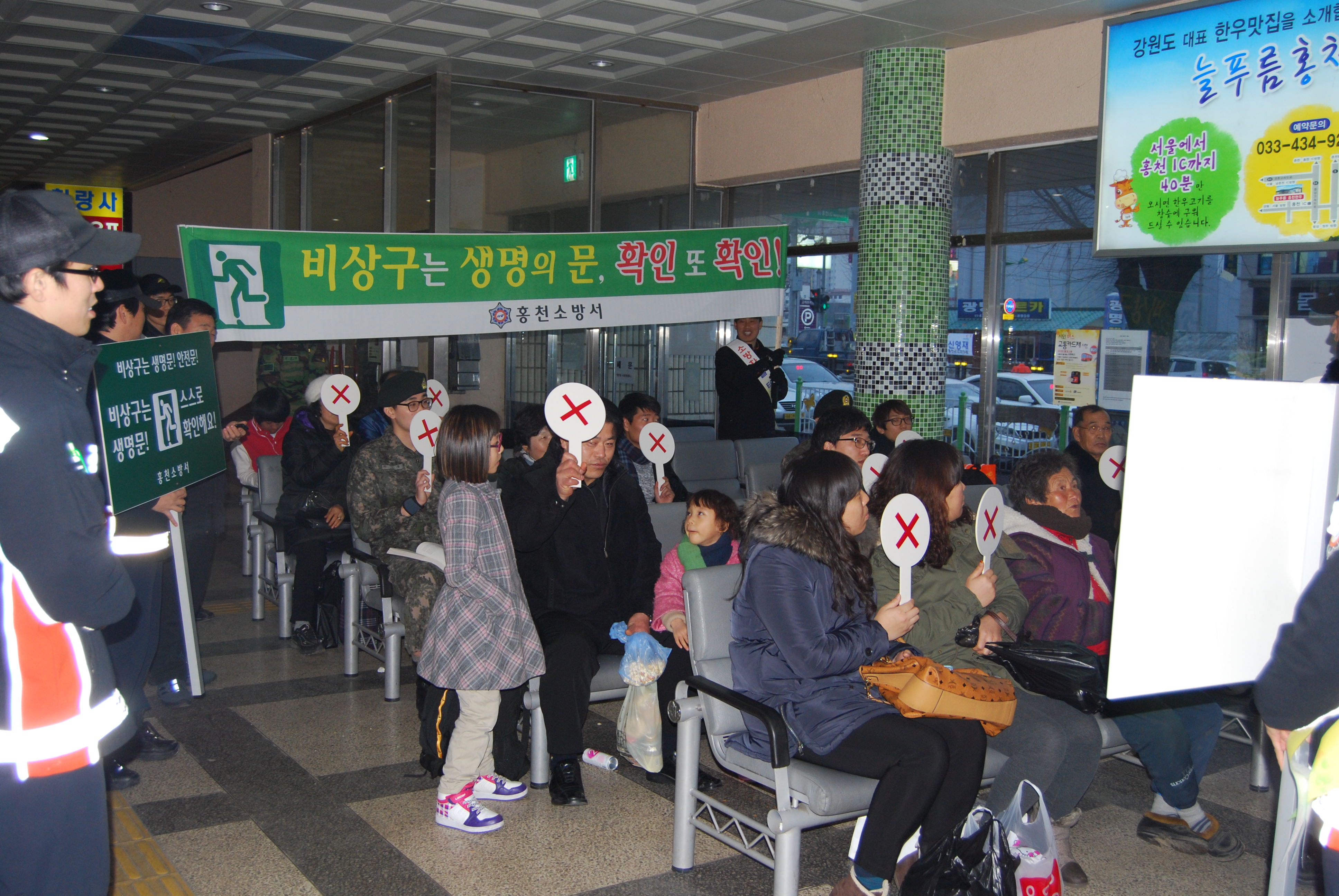 홍천소방서(서장 이종진)는 21일 오후 5시 홍천터미널 일대에서 자율적인 안전관리의 적극수행과 안전문화 확산 및 피난통보 환경개선을 위한「생명의 문 비상구 안전점검의 날」캠페인을 홍천소방서, 홍천군청, 홍천의용소방대등 약 70명이 참가한 가운데 실시했다.