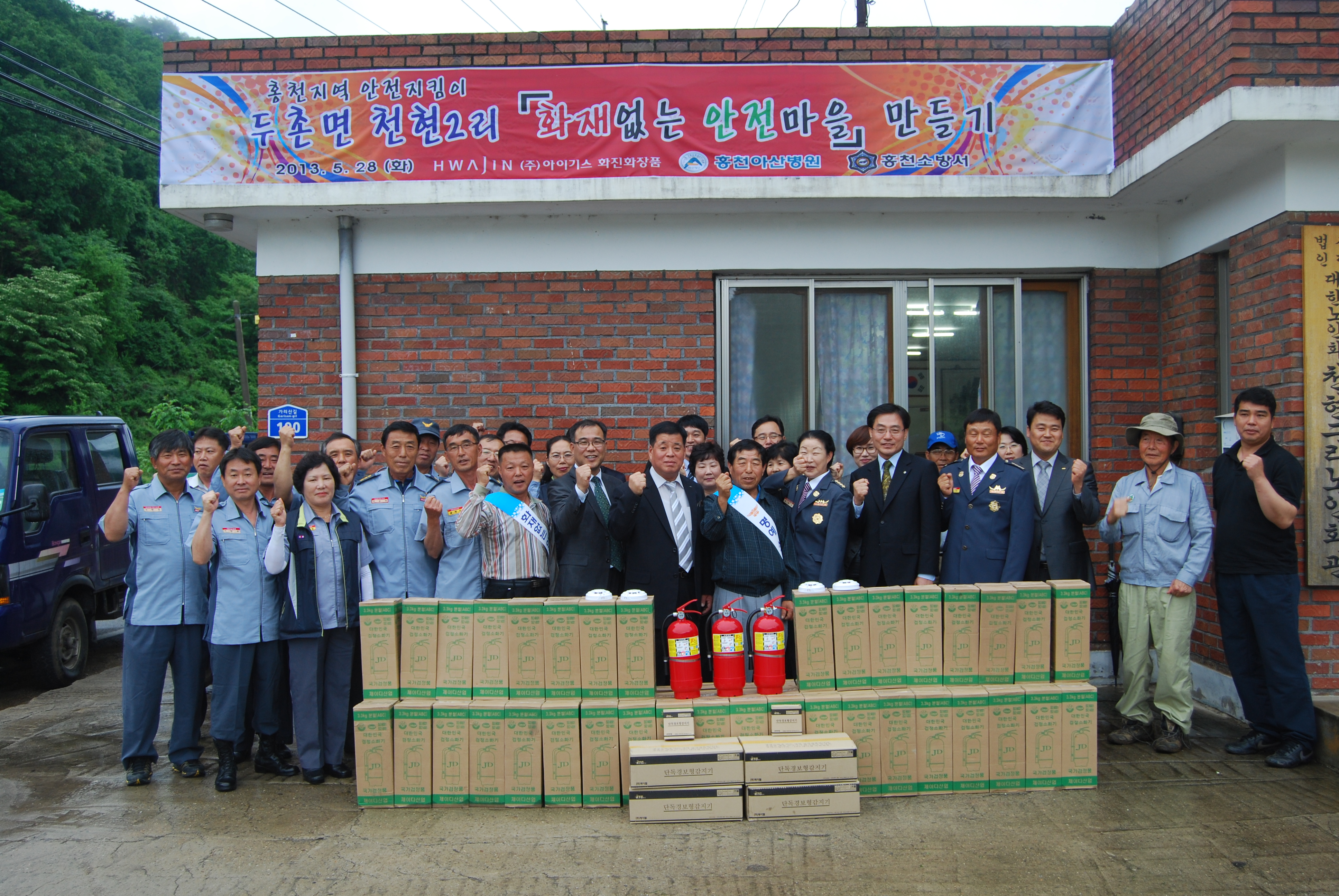 홍천소방서(서장:이종진)는 28일 오후2시 두촌면 천현2리 마을 회관에서 100여명이 참석한 가운데 화재 없는 안전마을 만들기 행사일환으로 소화기 기증과 지역단체가 함께하여 무료진료 등 봉사활동을 실시하였다.