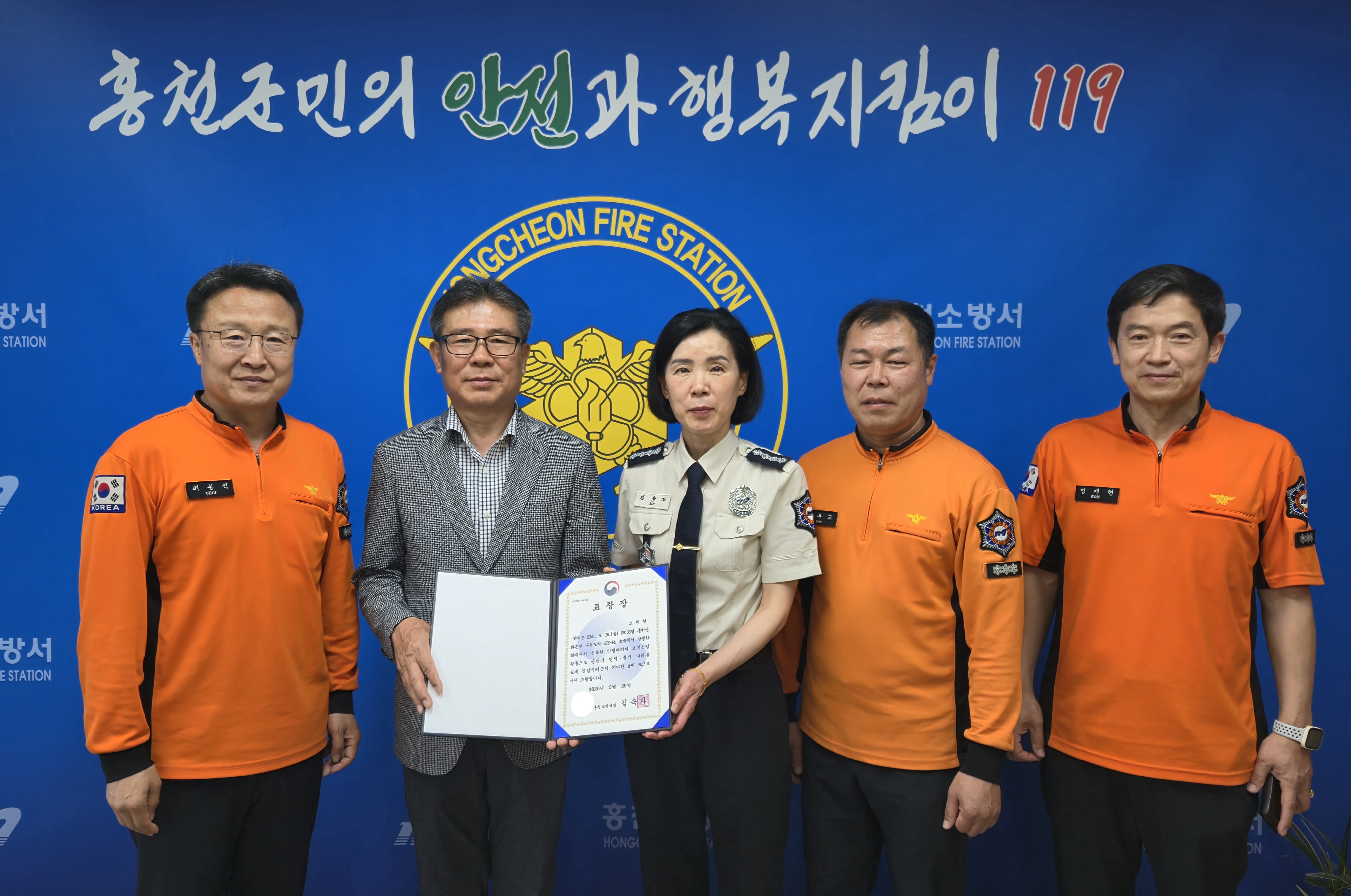 | 1128 | 홍천소방서, 화재 초기진압 유공자 노재현 씨에 민간인 서장 표창 수여 | 홍천홍보 | 2025-05-20 | 297 | |