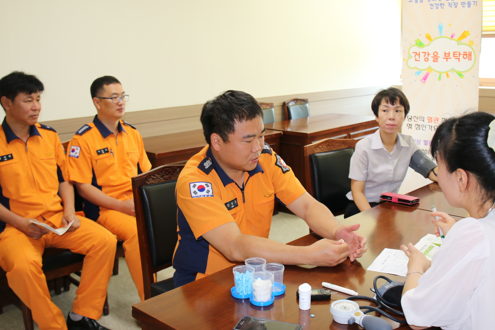 홍천소방서는 4일(목) 오전 10시 전략상황실에서 전직원을 대상으로 홍천군 보건소에서 실시하는 고혈압, 당뇨수치 검사 및 상담, ‘건강을 부탁해’ 프로그램을 운영하였다.