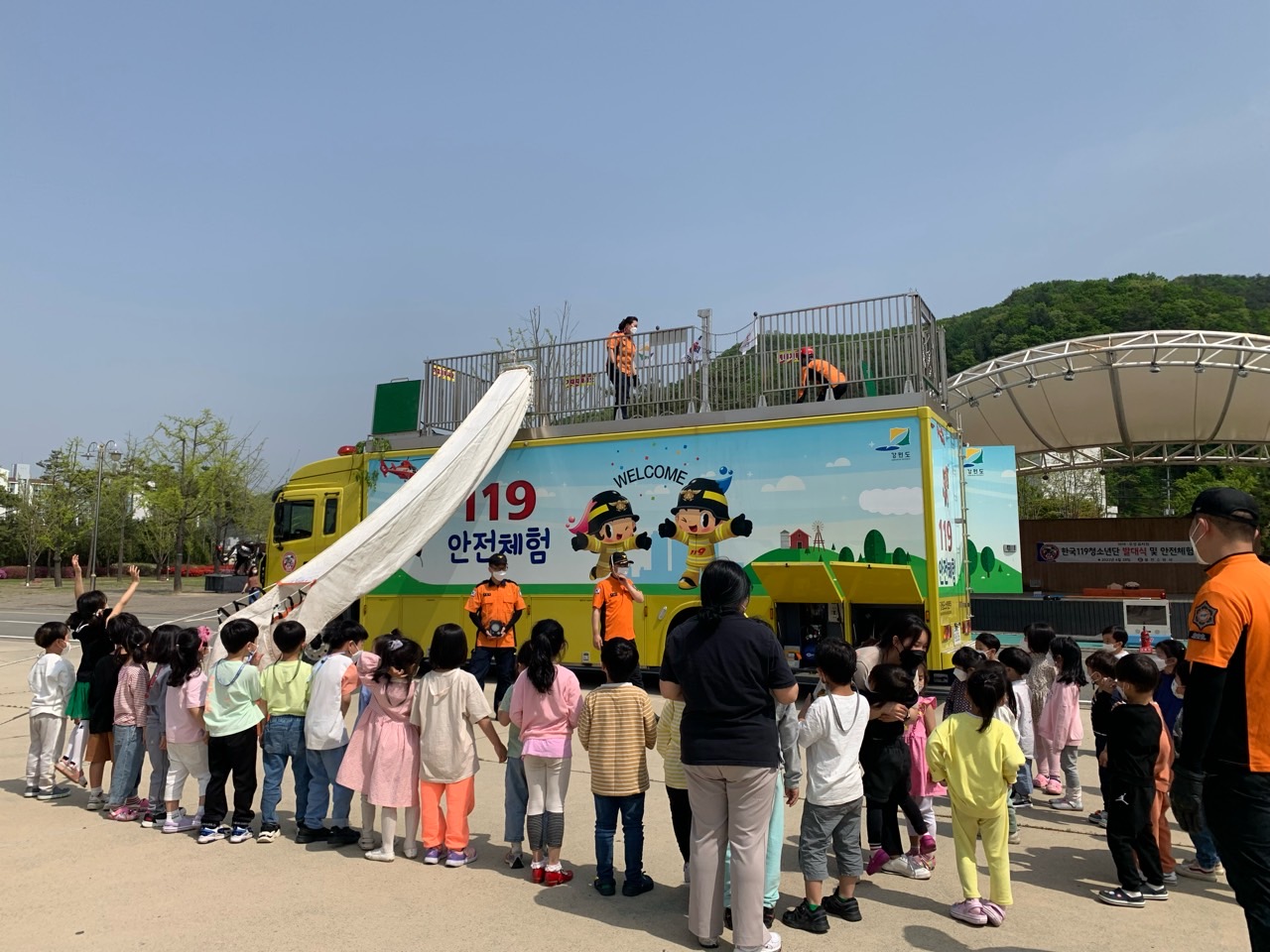 한국119청소년단 발대식과 소방안전 체험 행사를 진행하며 마야유치원과 우성유치원 아이들과 즐거운 추억 쌓기