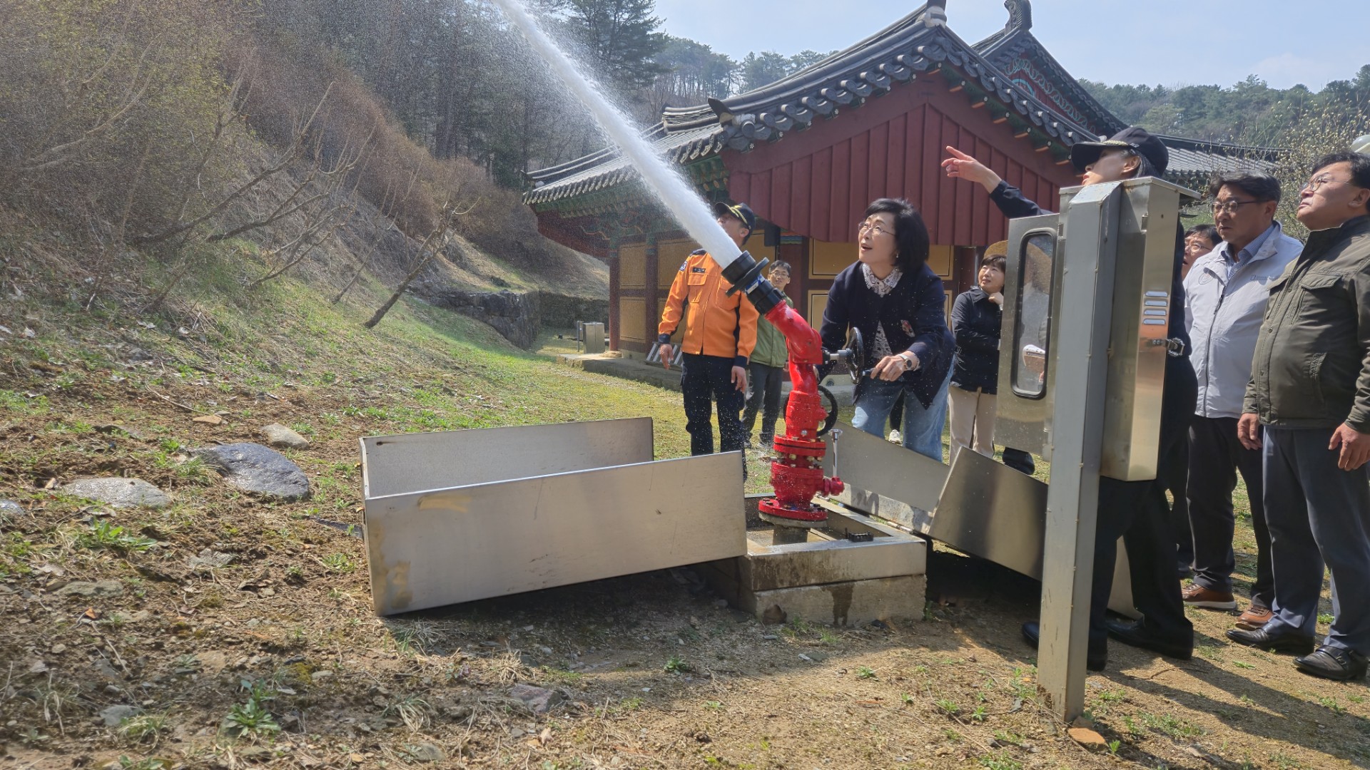 위원들은 수타사의 문화재 보호에 대한 중요성을 강조하며 관계자들과 함께 산불 예방 대책을 논의했다. 수타사 내에서 방수포와 비상소화전을 직접 사용해보고, 불꽃 감지기 등 소방 시설의 상태를 면밀히 살펴보며 수타사 문화재의 안전 대응 체계를 점검하고, 필요시 개선 방안을 논의했다.