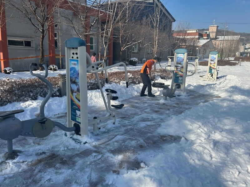 화천소방서 사내119안전센터에서 교통사고 예방과 화천군민 불편 최소화를 위해 센터 앞 , 체육시설 제설작업 총력 대응했습니다.