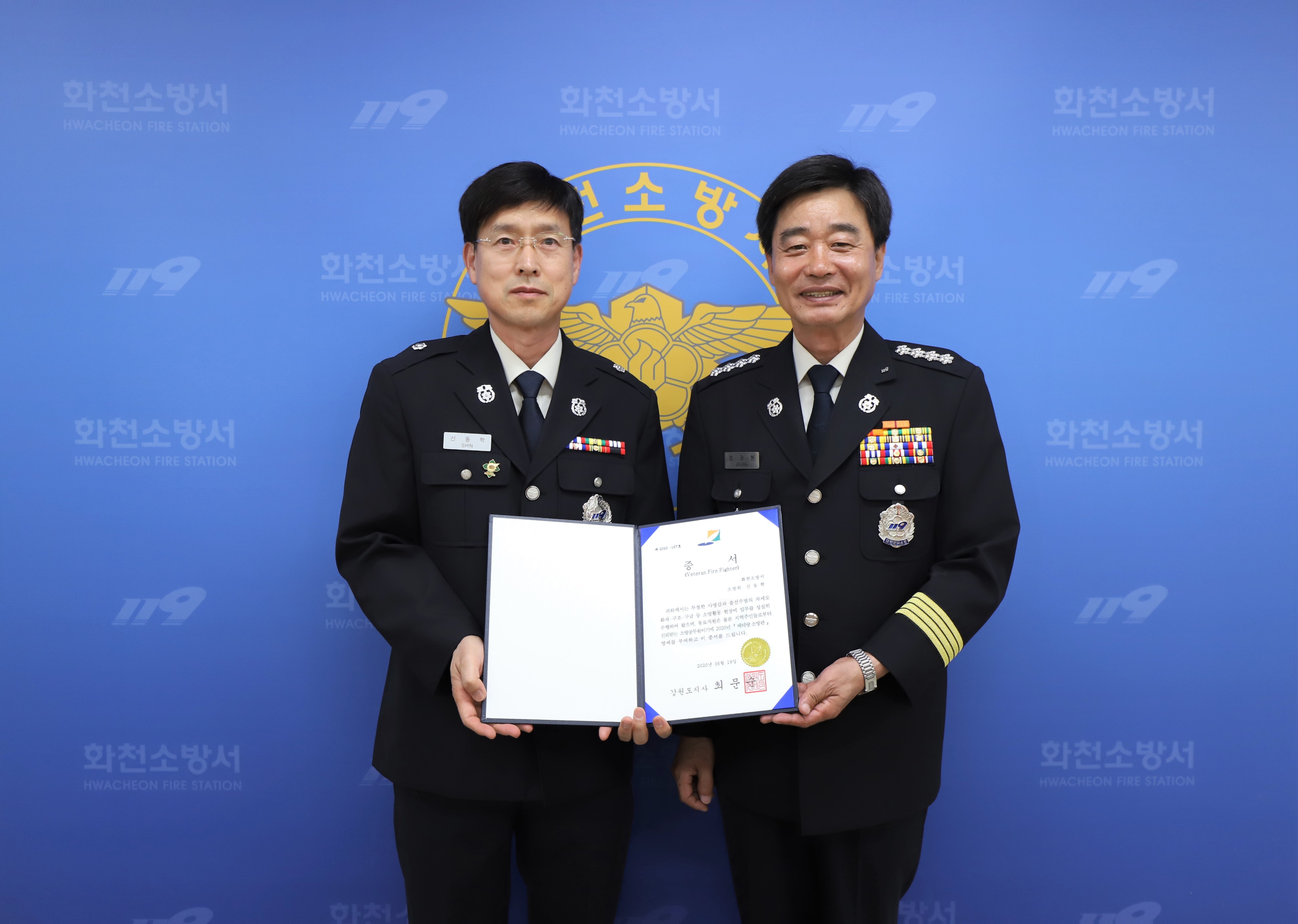| 39 | 화천소방서 신동학 소방위, 제12회 베테랑 소방관 영예수여식 | 화천홍보 | 2020-06-19 | 1219 | |