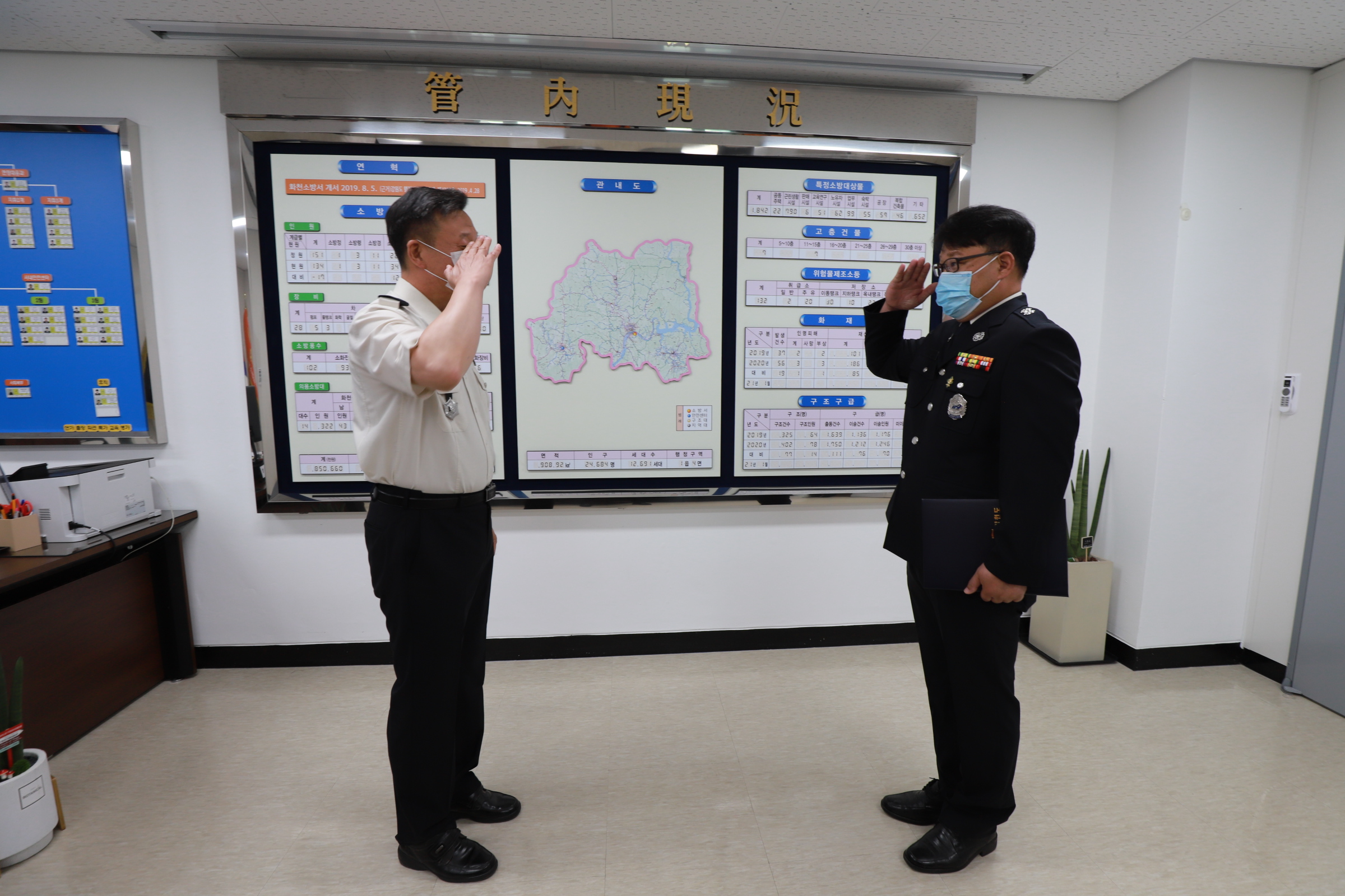 화천소방서는 29일 오전 '2021년 제13회 베테랑소방관' 에 선정된 박정훈 소방경에게 영예 수여식을 실시하였습니다.