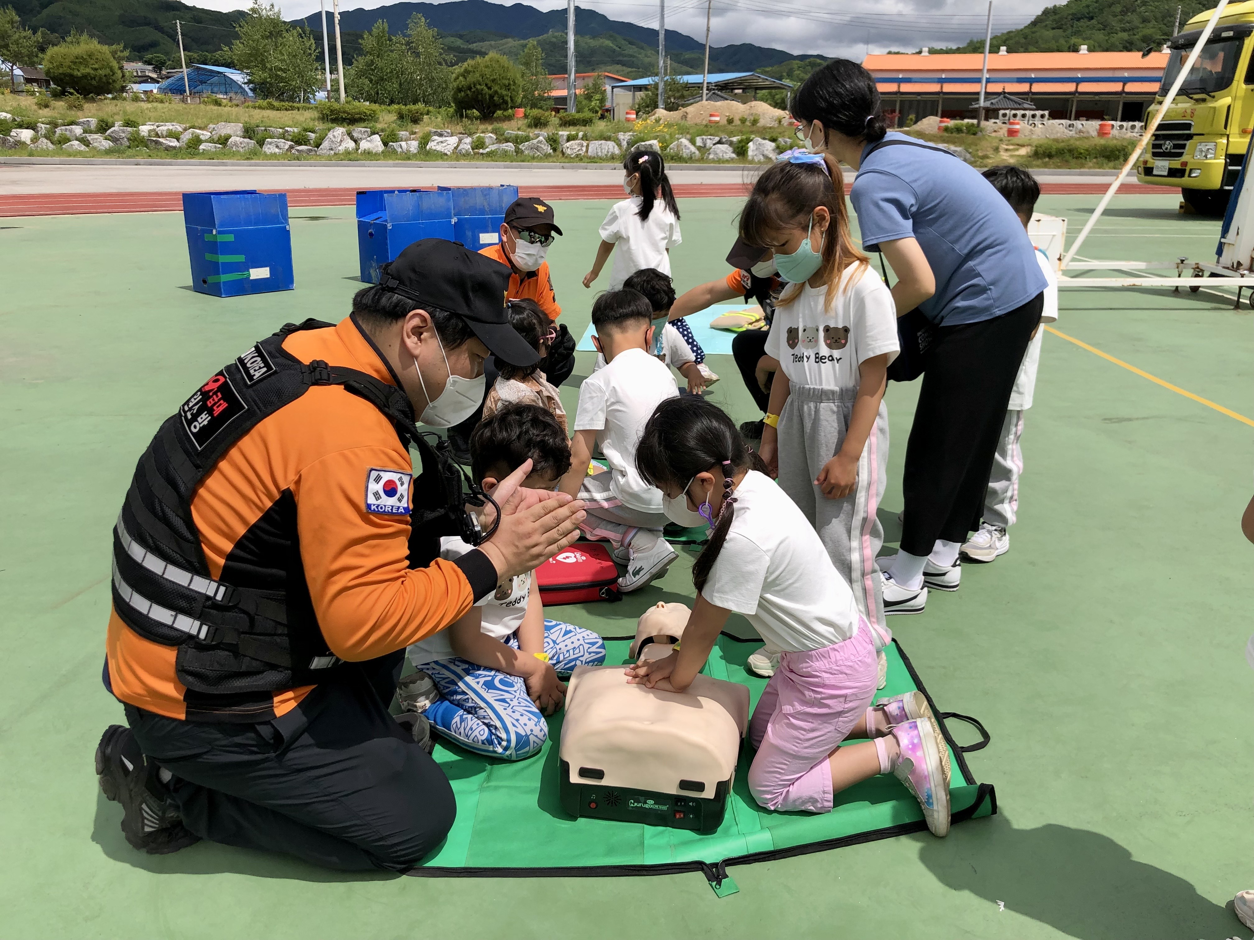 화천소방서는 6월 7일 오전 9시 사내면 문화체육공원에서 실내초등학교, 다목리 어린이집 어린이들을 대상으로 119청소년단 발대식 및 이동안전체험차량 소방안전교육을 실시했습니다.