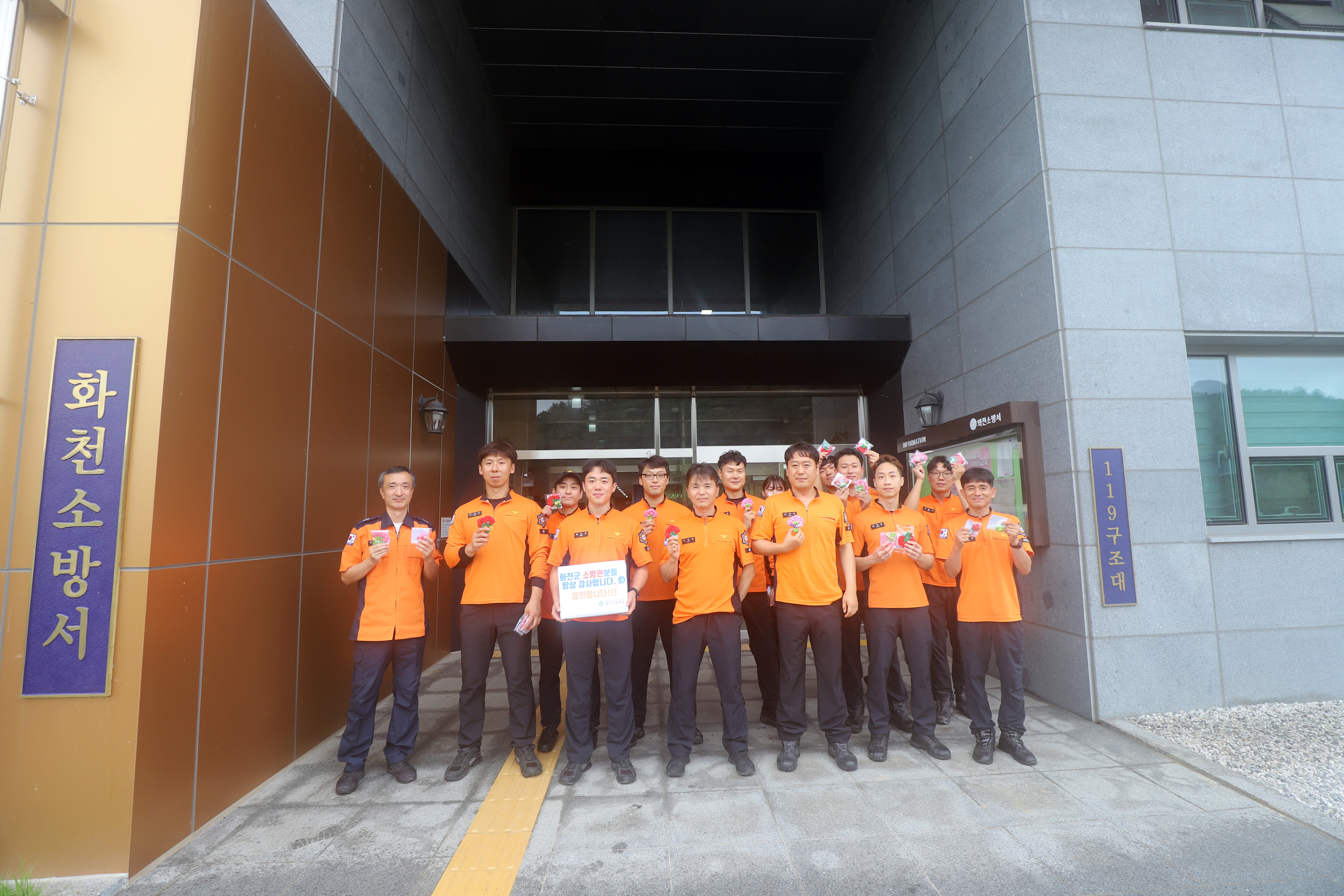 "소방관님 감사합니다" 화천고 학생들 화천소방서에 카네이션 전달