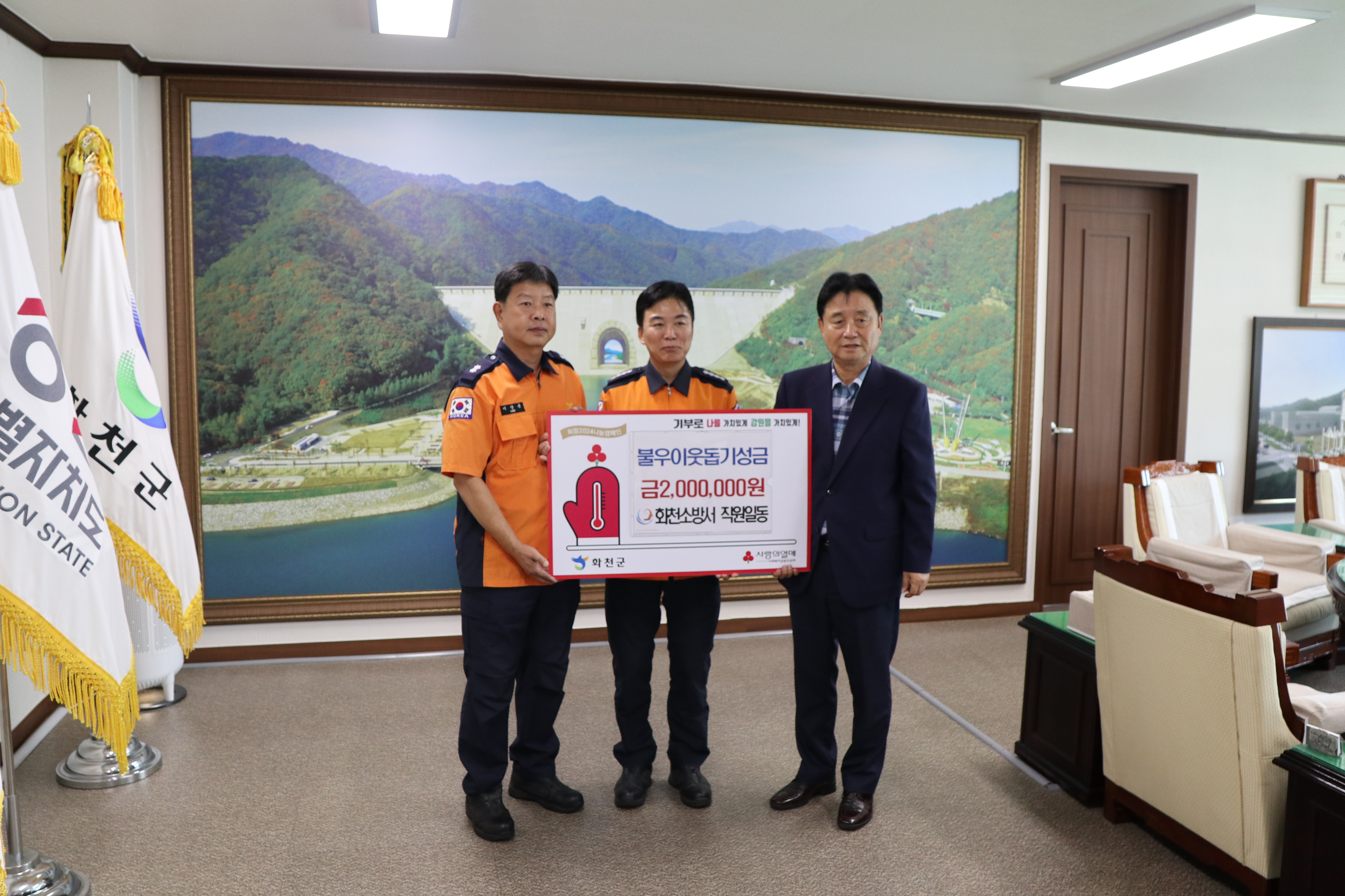 전달식은 9월 10일 화요일, 화천군청 군수실에서 최문순 화천군수, 최임수 화천소방서장 등이 참석한 가운데 진행됐다.