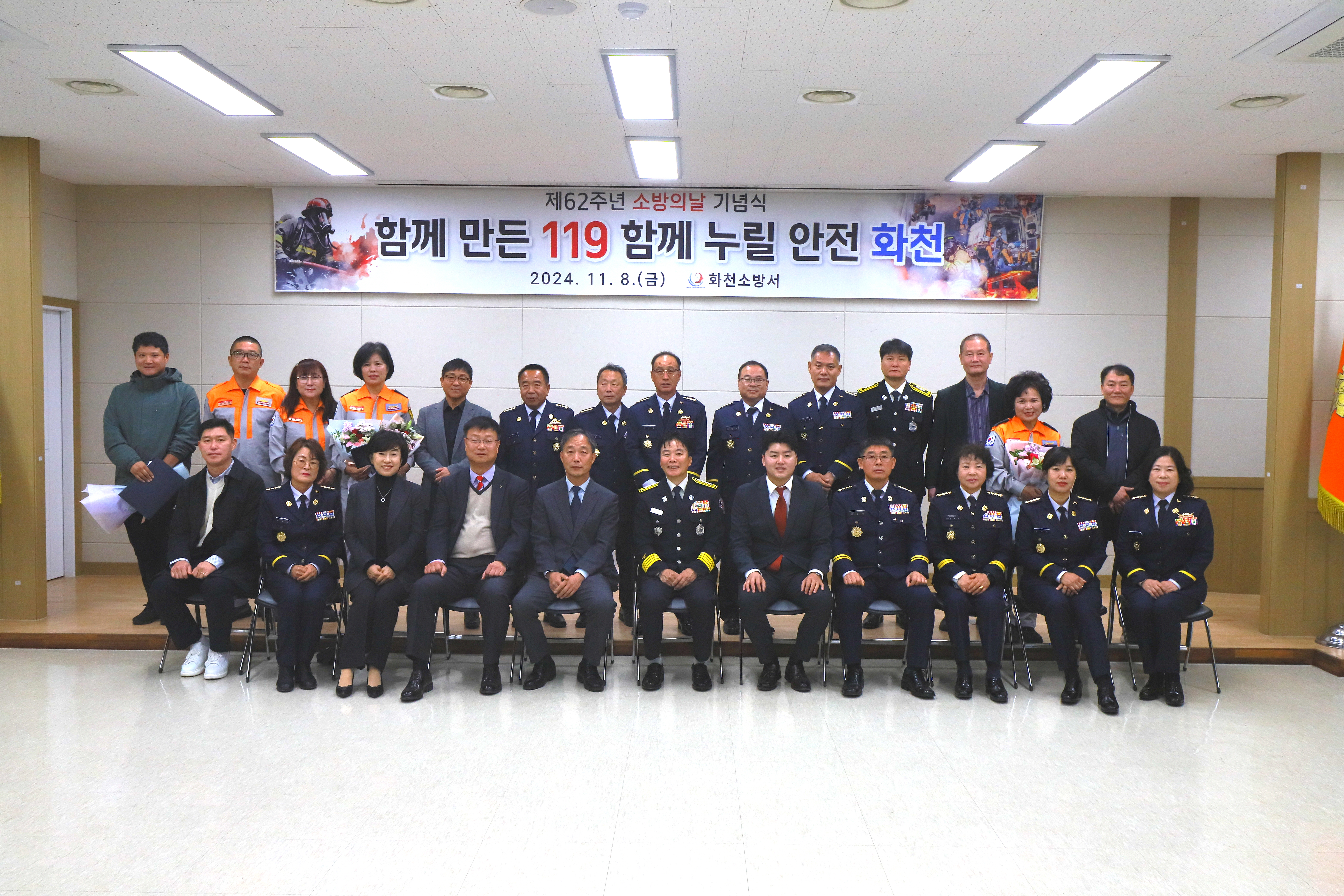 박대현 도의원, 지기선 화천부군수, 봉윤일 NH농협군지부장을 비롯, 의용소방대원, 민간인 유공자, 소방공무원 등 122명이 참석한 가운데, 총 33명이 표창을 수상했습니다.