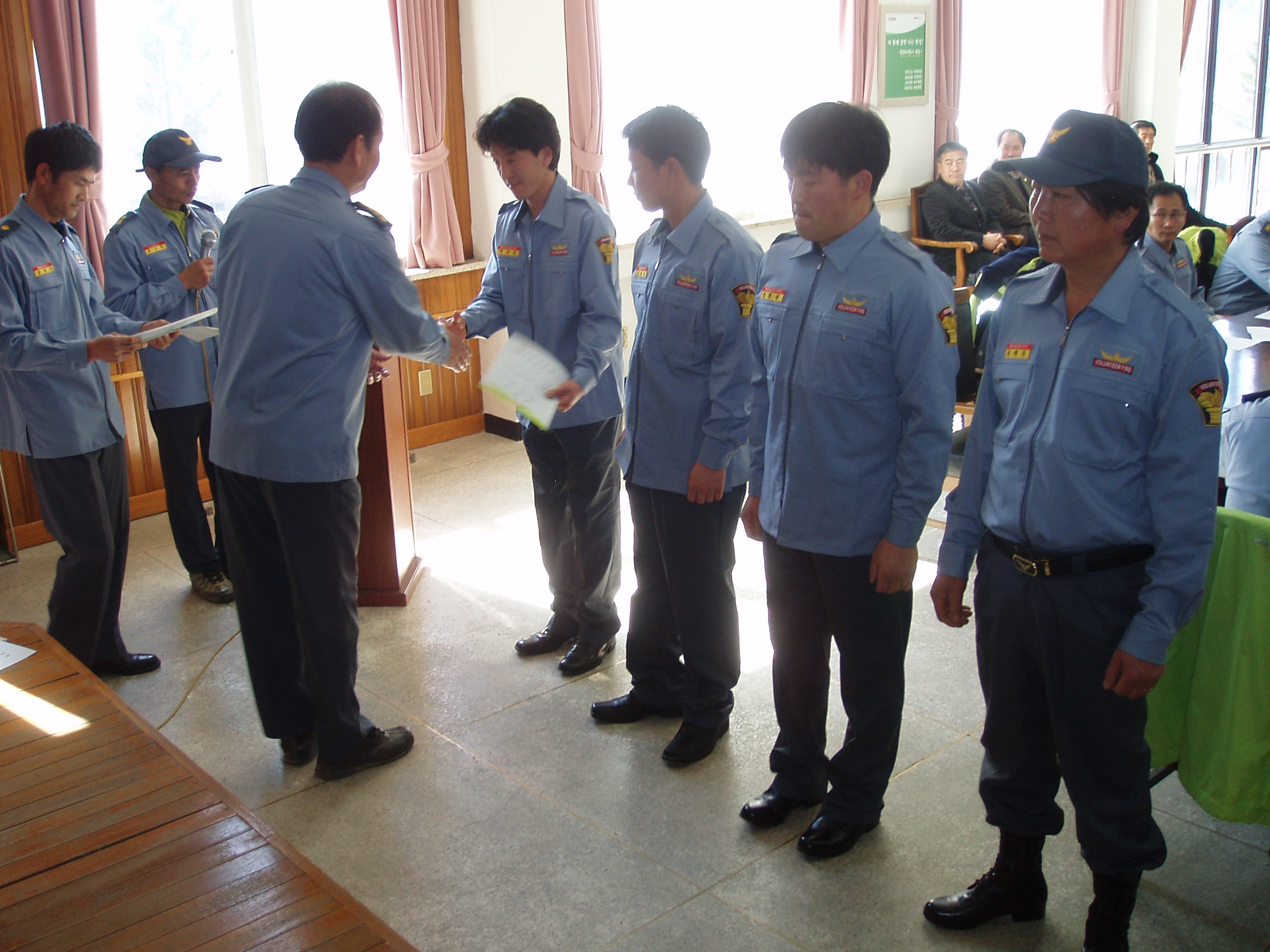 강림의용소방대(대장 장상욱)는 3월3일 강림면사무소 대회의실에서 구제역으로 연기 되었던 연시회의를 개최하였습니다. 오늘 연시회의는 2011년도 사업계획과 퇴임하신 이상범 부대장님의 감사패 수여와 신입대원에 대한 임용장 수여식이 있었습니다. 그리고 함종국 도의원님과 남홍순 안흥농협조합장께서도 참석하여 축하를 해주셨습니다.