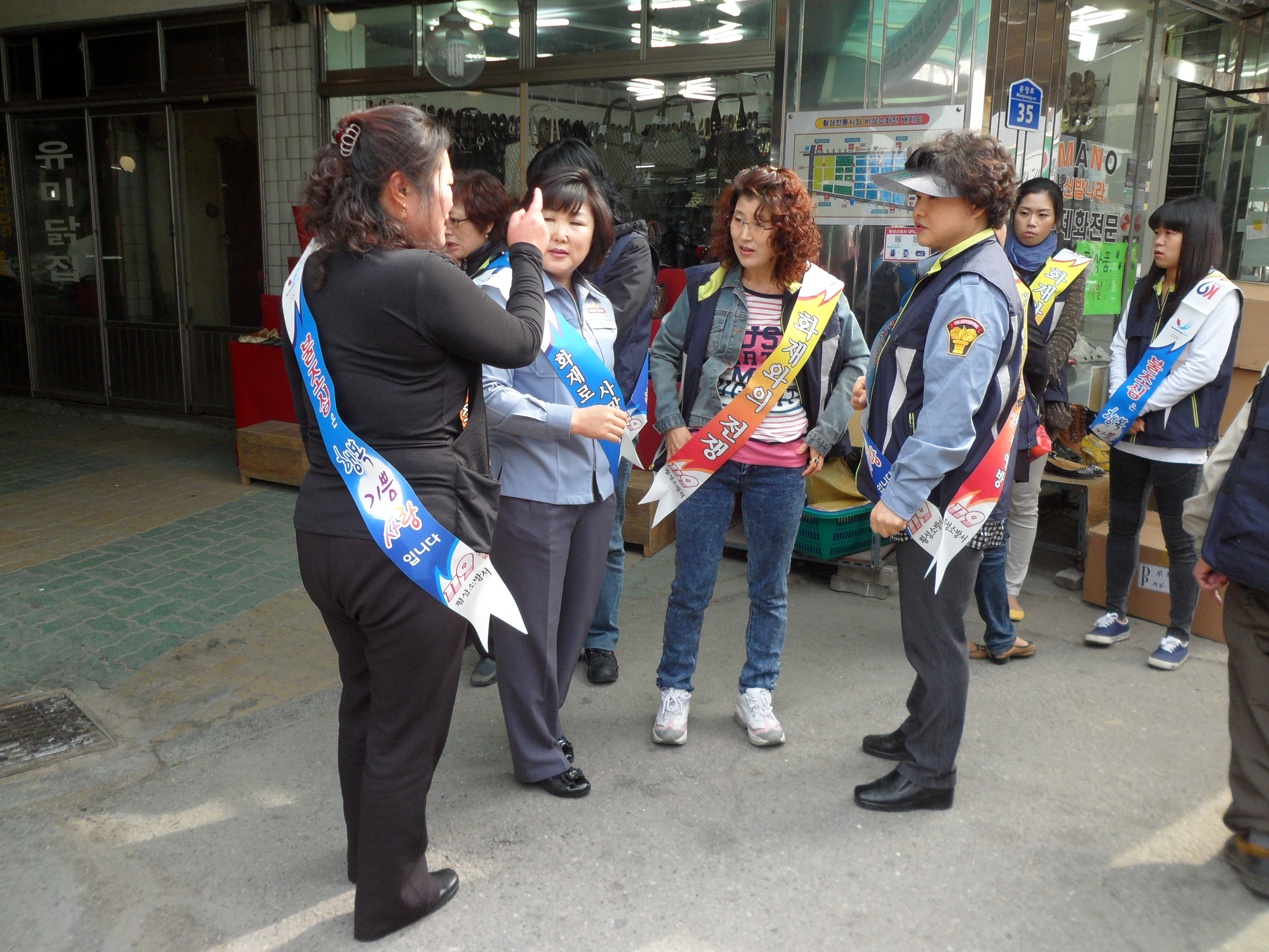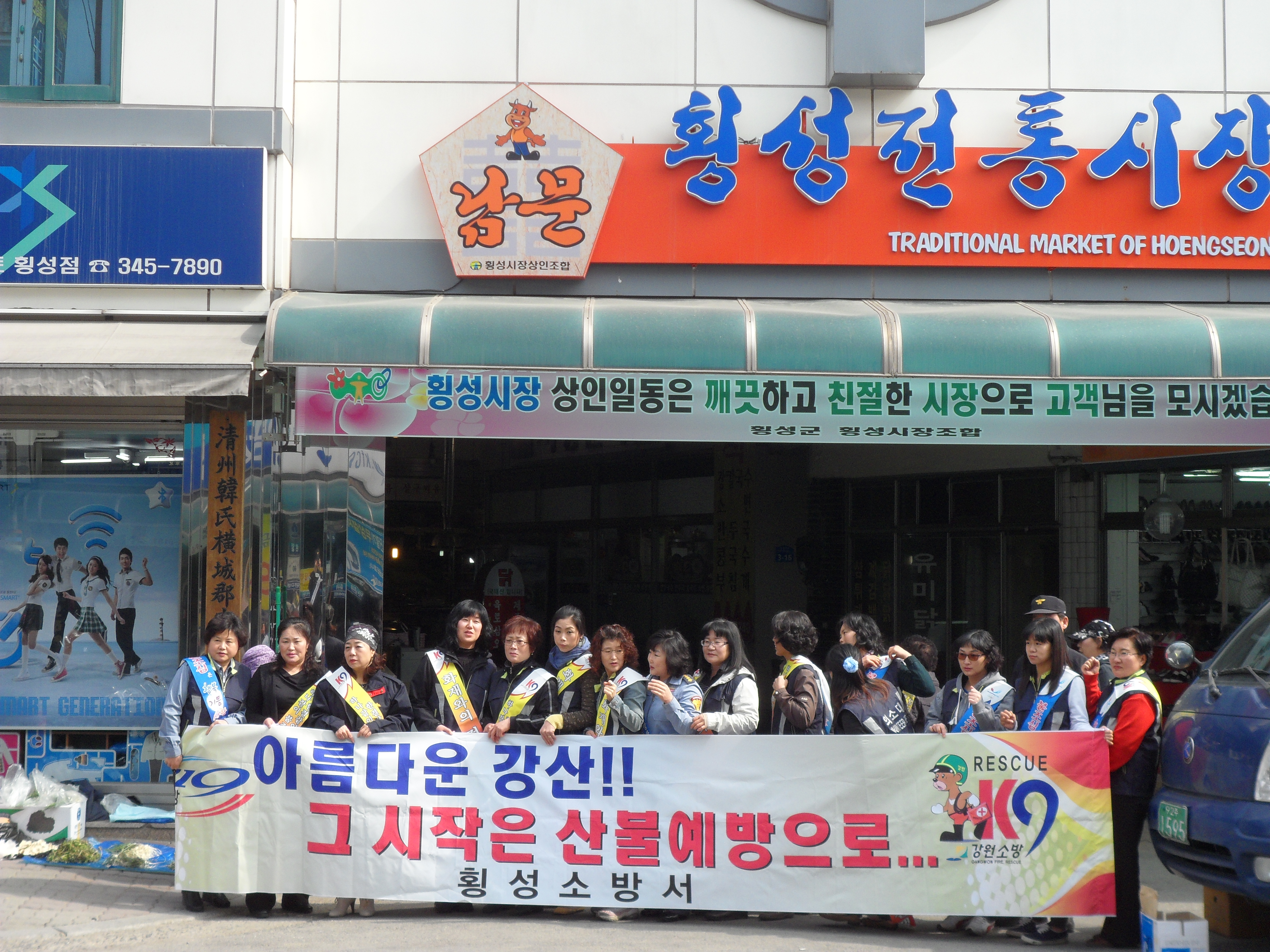 횡성 여성소방대 장터에서 산불조심 캠페인을 하고 전단지 배부을 하였습니다.