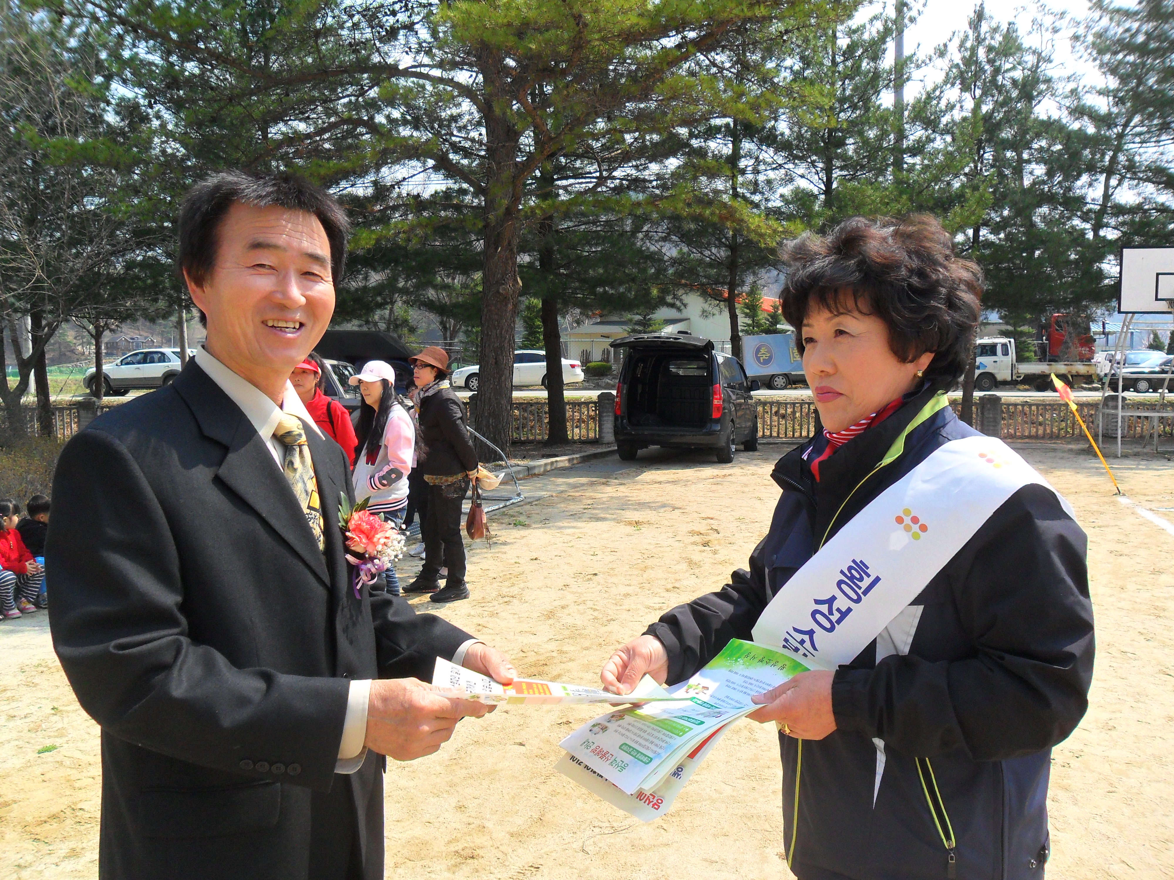 여러기관장들과 체육대회에 오신 분들에게 산불예방 조심에 대한