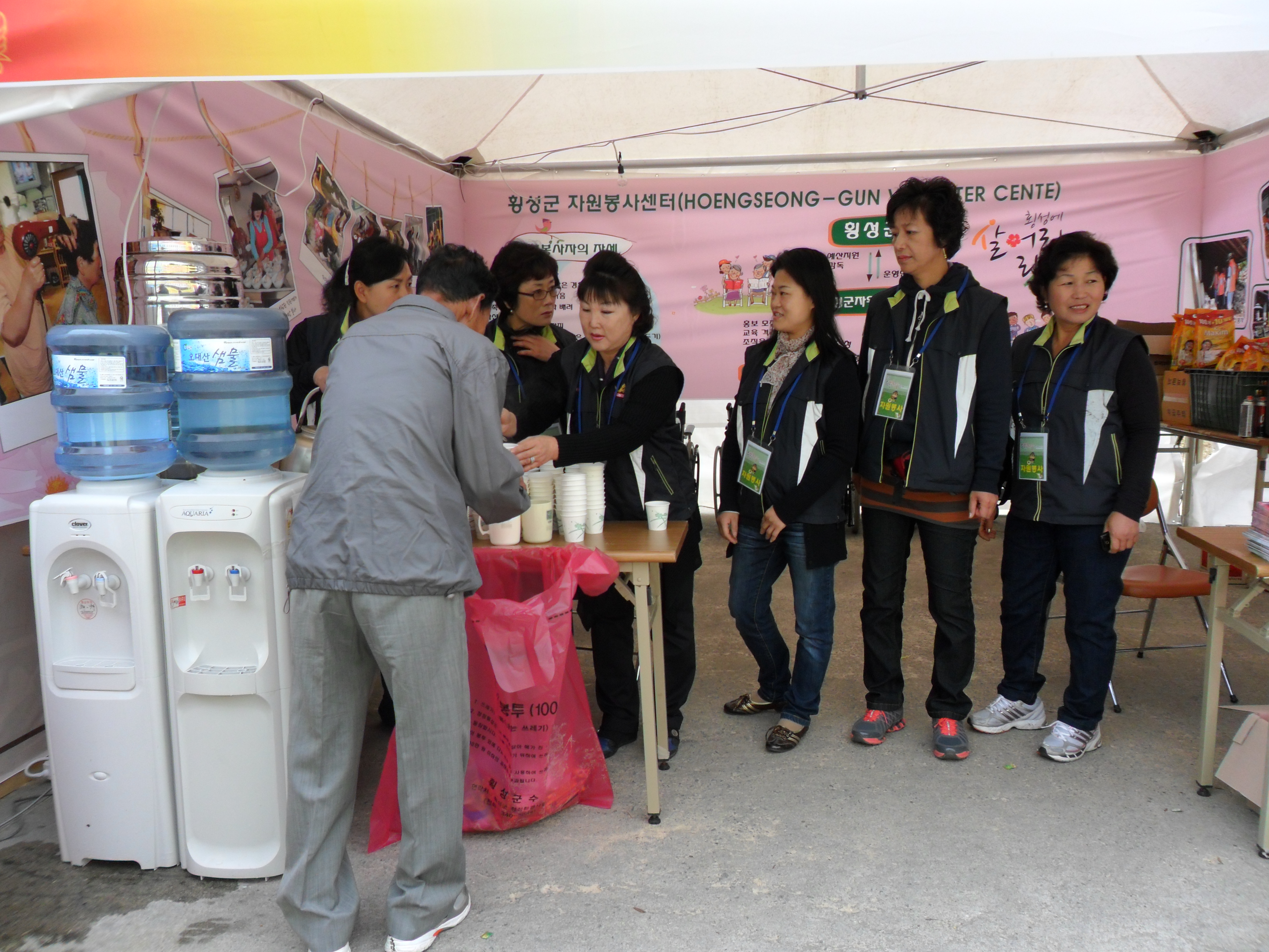 대장 박선숙 등 25명이 횡성한우축제를 맞이하여 축제 종합안내 및 급수봉사, 휠체어 대여를 하여 한우축제에 찾아오시는 타지인들과 지역민들을 대상로 봉사활동을 하였습니다.