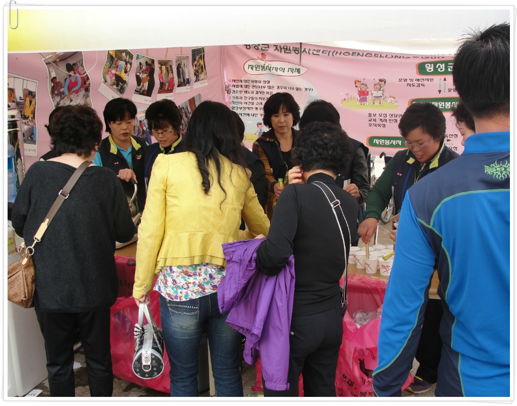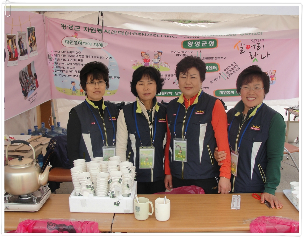 지난 10월9일 횡성한우축제장에서 횡성소방서(서장 조근희) 소속 안흥여성의용소방대(대장 김정자) 는 관광객에 음료 및 종합안내 활동을 실시하였습니다