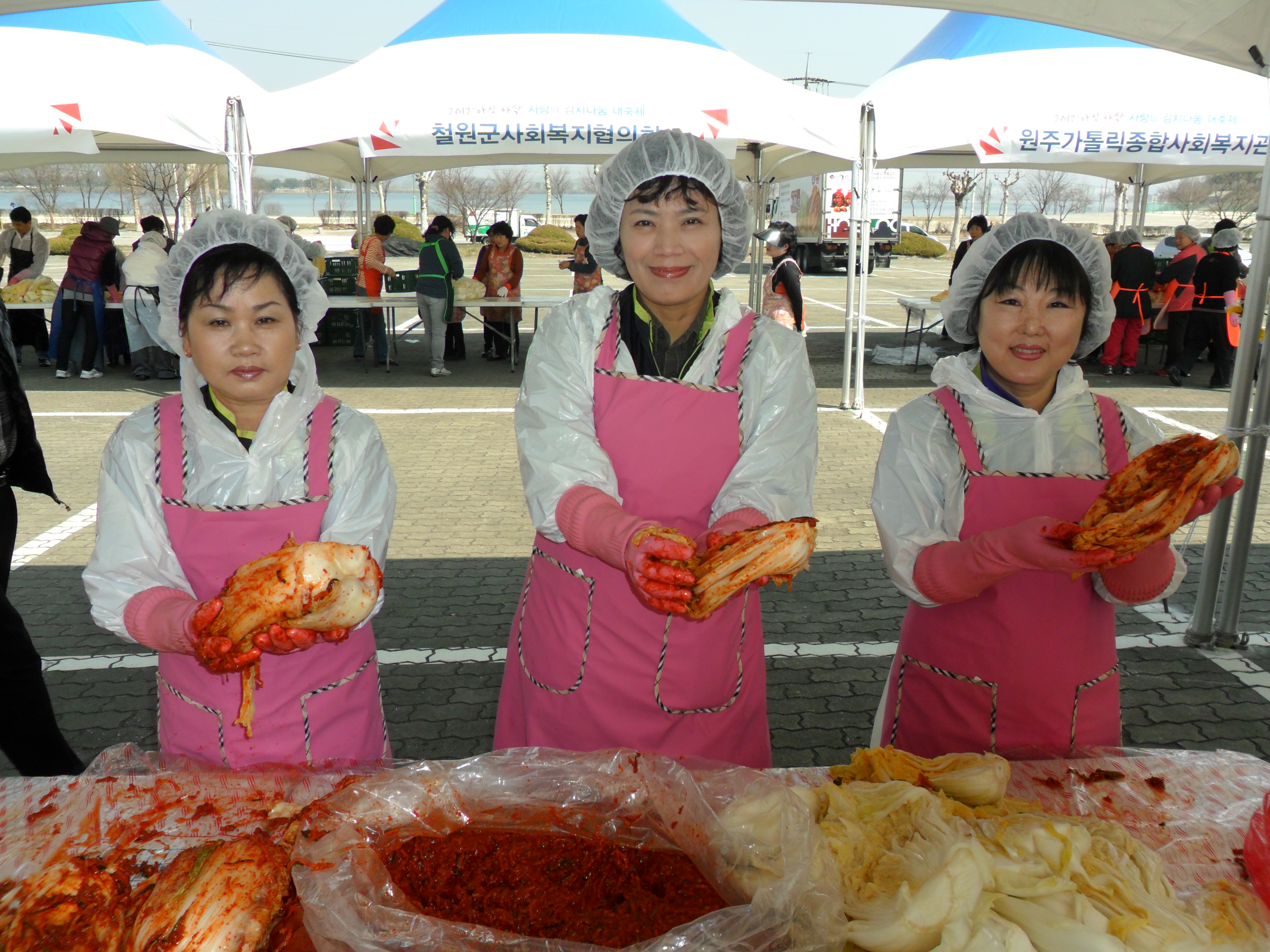 2012년 04월 09일 월요일 횡성여성의용소방대장 박선숙 외 5명의 대원들이 춘천에서 실시한 김치봉사활동에 참여하여 독거노인 200여가구에 제공할 김치를 담갔습니다.