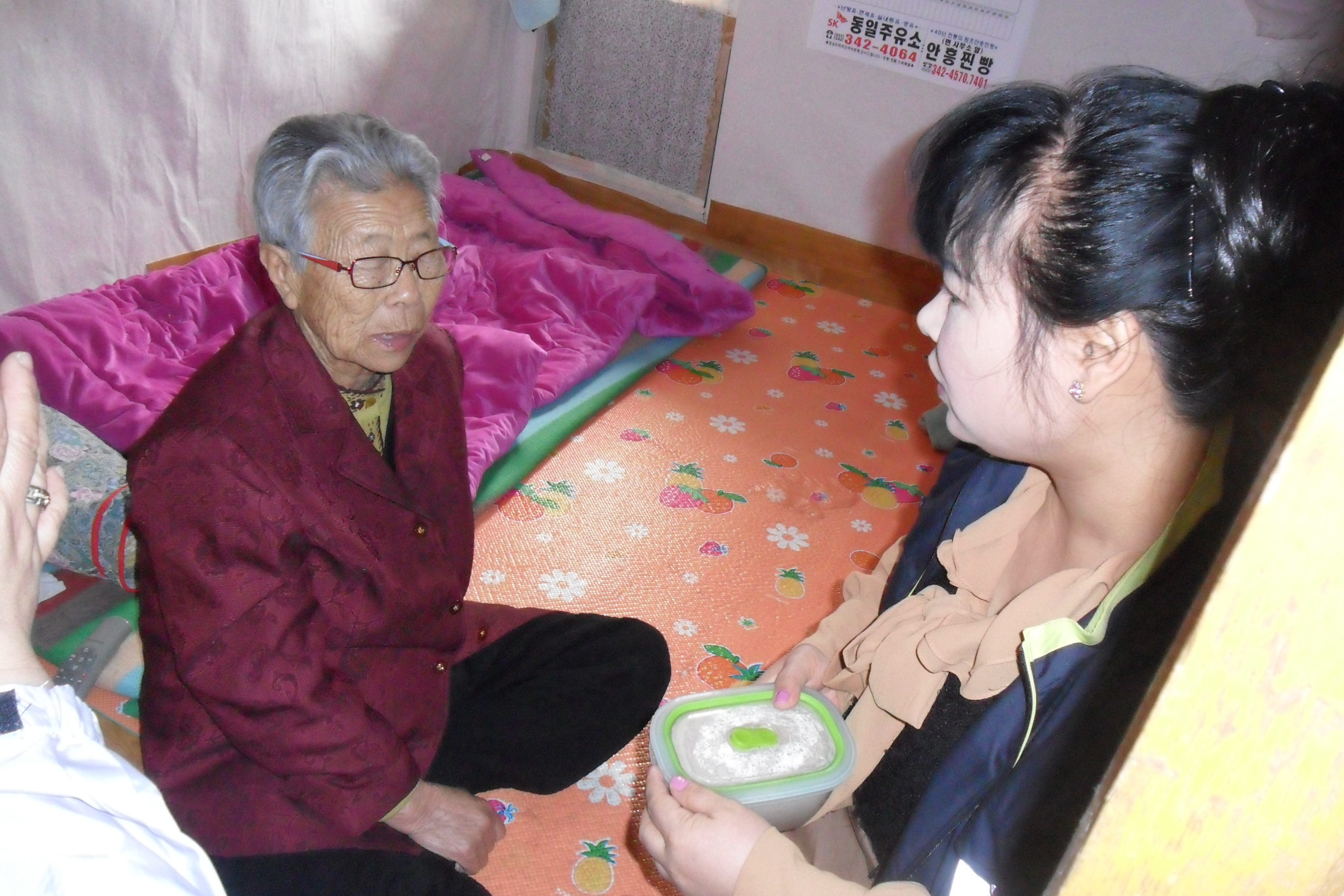 독거어르신가정을 방문하여 견과류 죽을 전달하고 아프신 곳은 없는지