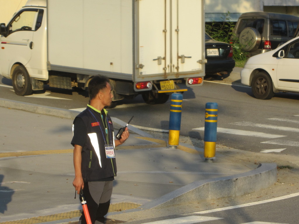 교통정리 봉사를 실시하게 되었습니다. 1일 2교대 총 12명씩 투입되고 있습니다.