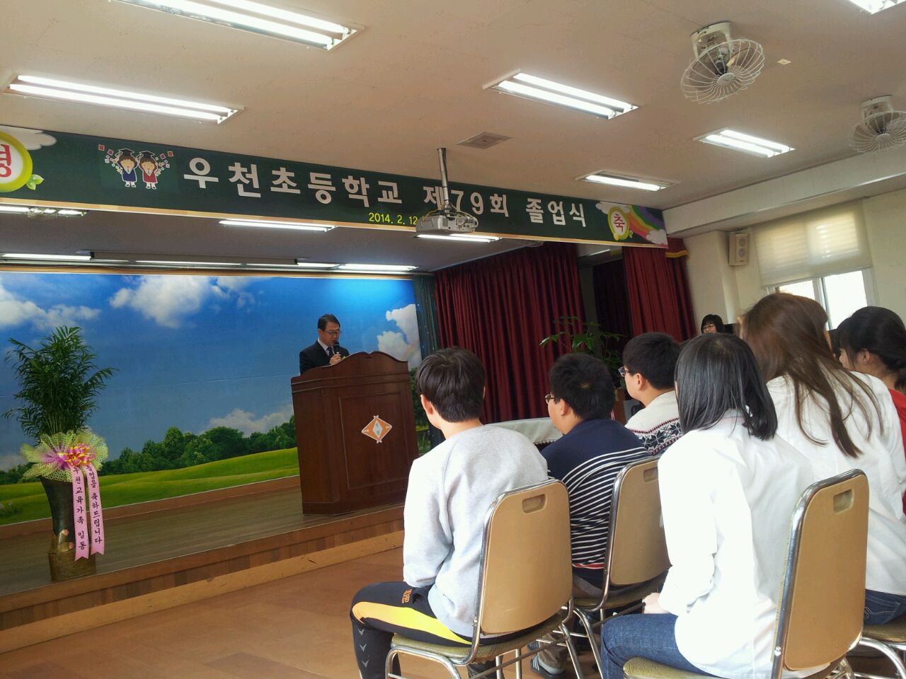 2014년 2월 12일 우천초등학교 졸업식 참석하여,