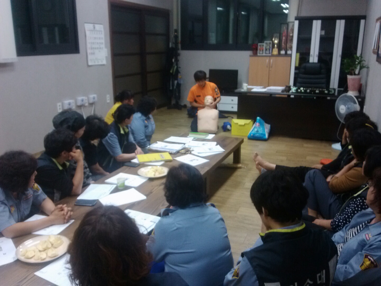 공근여성의용소방대(대장 이상순)에서 2014.09.19(금) 17:00~21:00까지 9월 정기교육 및 한마음전진대회 참가 관련사전 논의,응급처치이론과 CPR실습을 하였습니다.