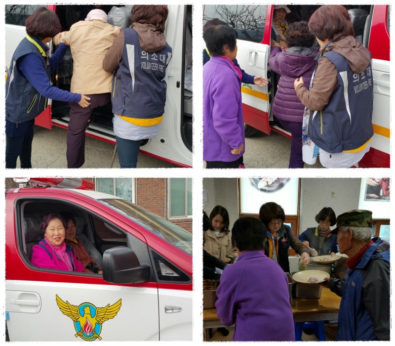 강림여성대 대장 정성자 외 5명은 2016.03.23(수) 10:00 ~14:00까지 강림성결교회에서 열리는 강림면노인복지대학에 참여, 의소대활동차량을 이용하여 원거리 학생(노인)들을 위해 통학차량 운행 및 식당봉사를 실시 하였습니다.