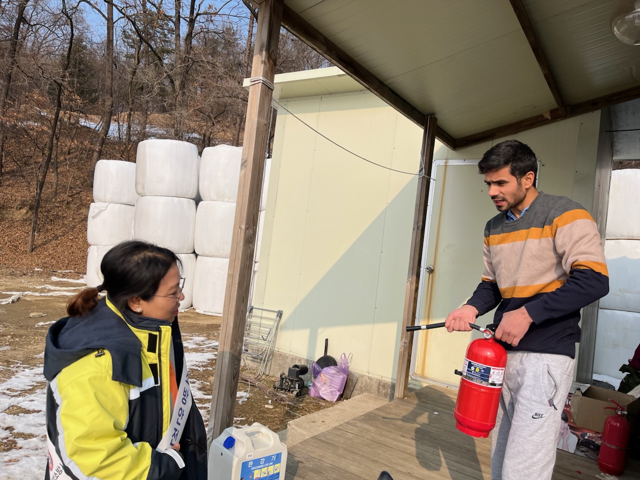 대형축사를 방문하여 ▲다국어 교육자료 제공 ▲소화기 사용법 ▲119신고방법 ▲완강기 사용법을 실시하였습니다.