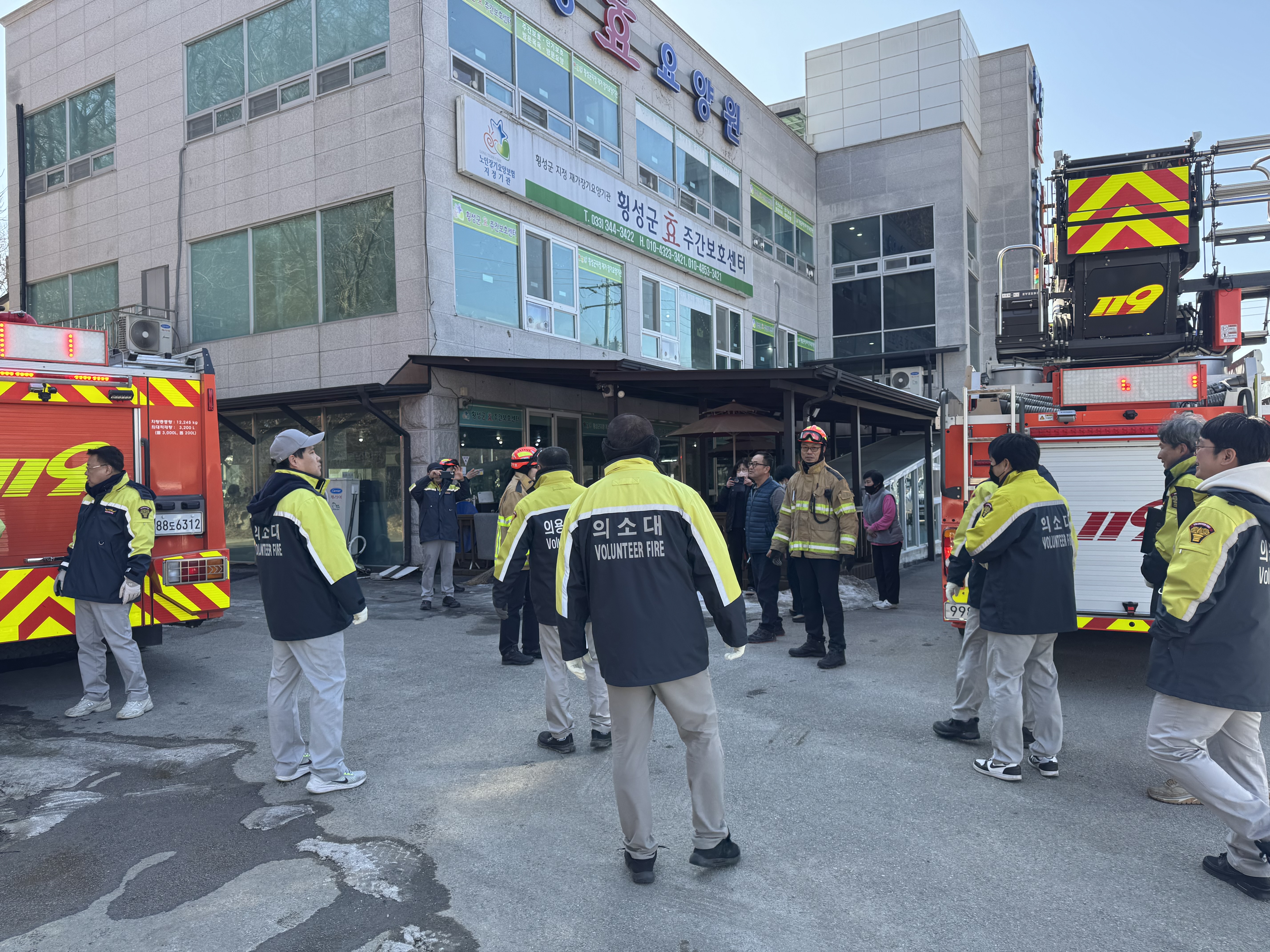 수난대(대장 진범식) 12명이 2월 18일 오후 2시 효요양원을 방문해 산림 인접 피난약자시설을 대상으로 훈련을 실시했습니다.