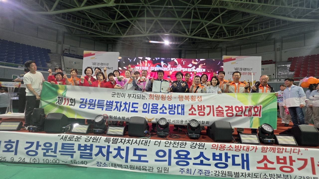 횡성소방서 의용소방대연합회는 9월 24일 태백에서 열린 제11회 강원특별자치도 의용소방대 소방기술경연대회에 참가해 종합순위에서 장려를 수상했다.
