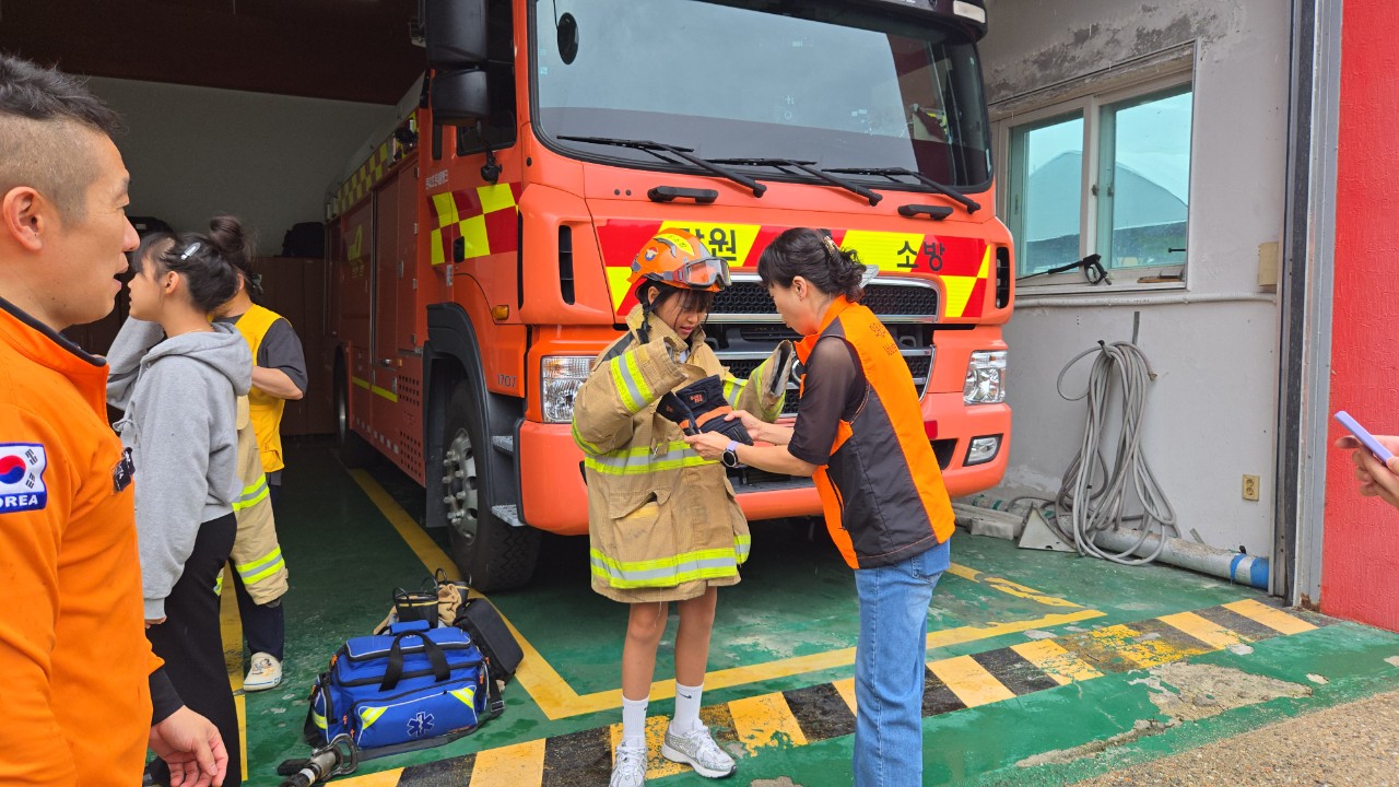 이날 아이들은 둔내119안전센터를 방문해 소방안전교육을 받고, 소방차량 탑승 및 장비 체험을 하며 안전의 중요성을 배우는 뜻깊은 시간을 가졌다.