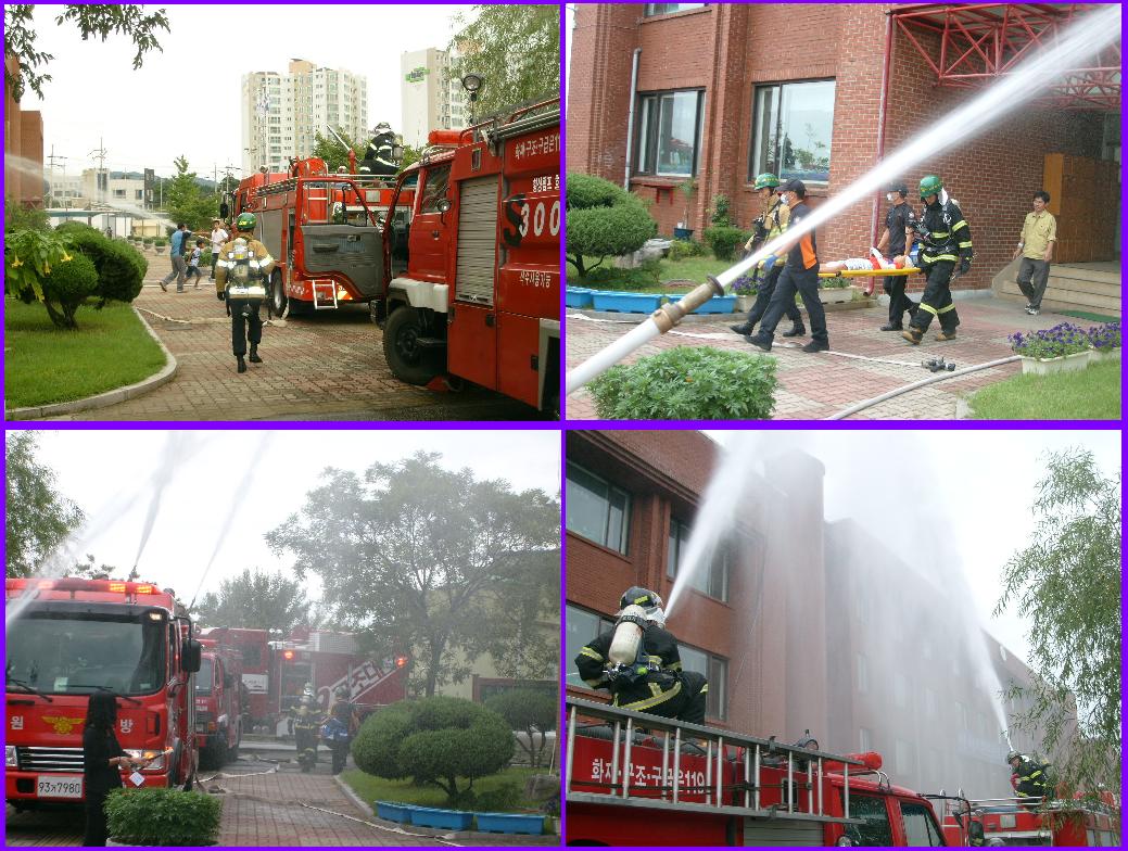 금일 훈련에는 관계자(자위소방대) 30여명이 참가한 가운데 옥내소화전 , 소화기 등 자체소방