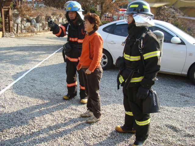 이번 훈련은 우선 훈련장소의 창고부근에 가상화점을 부여하고, 직원(소화기를 이용한 초기진화 1명/ 신고 및 차량 안내1명)분께 임무를 부여하고, 함께 현지적응 훈련을 실시 하였습니다. 이와 동시에 출동/철수 시 출동로 확보 및 신규자 차량운행 교육을 병행하였습니다.