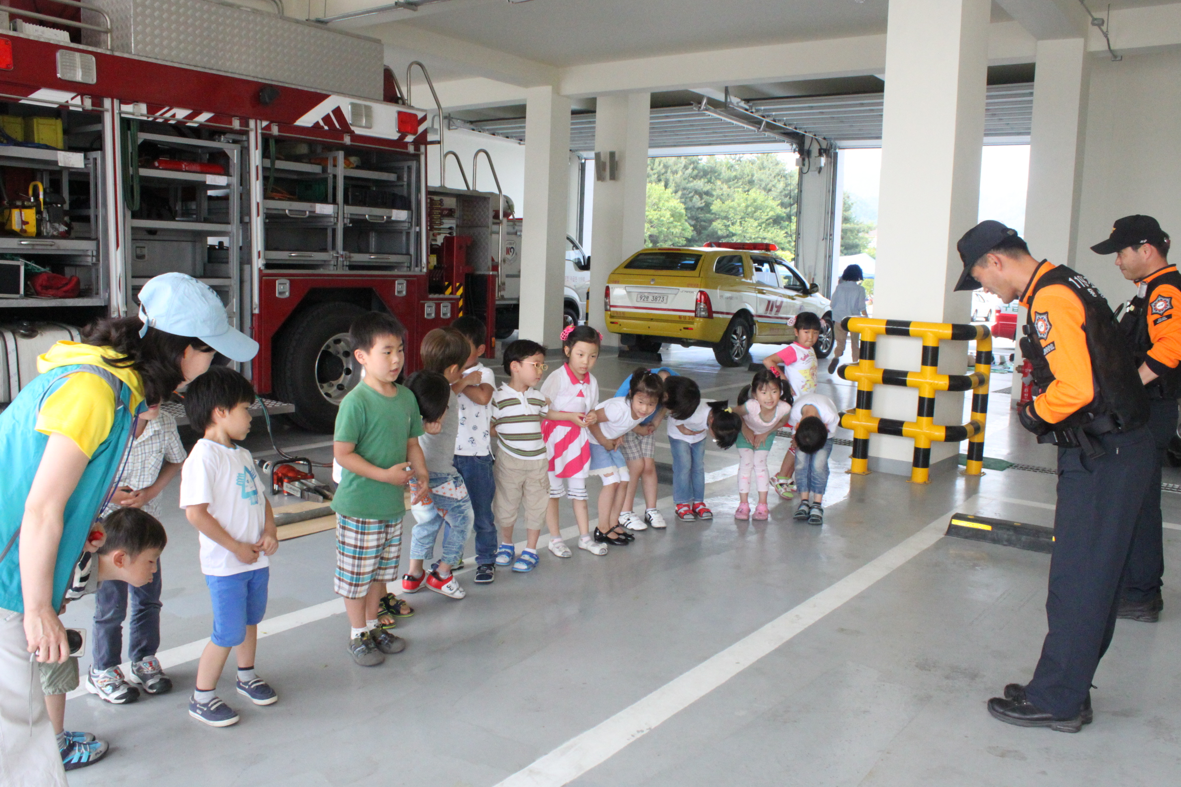 횡성소방서(서장 조근희)에서는 2011년 6월 8일(수) 14:00 횡성초등학교 병설유치원 어린이 15명이 소방서에 견학을 왔습니다. 어린이들에게 구조장비 사용 시연 및 화재시 행동요령 교육 등을 하였습니다.