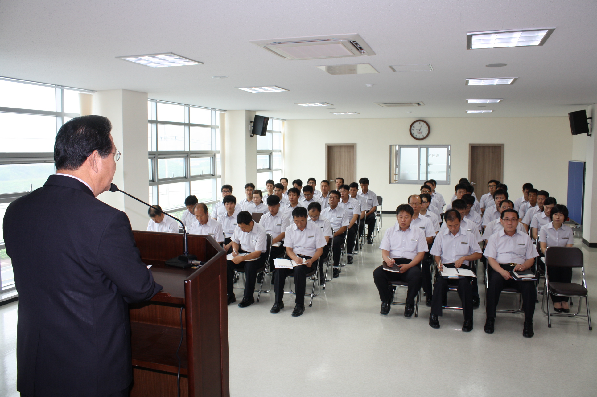 횡성소방서(서장 : 조근희)는 7월 4일 09:00에 현장안전관리 및 공직기강확립을 주제로 하여 직장교육 및 월례조회를 실시하였다.