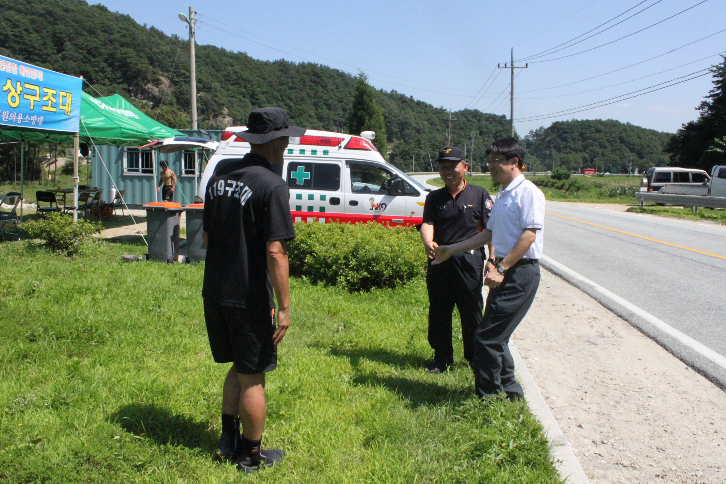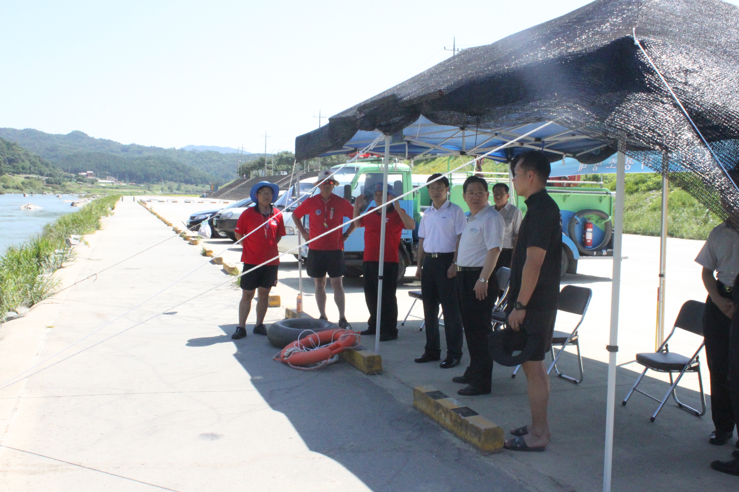 근무중인 직원과 의용소방대원을 격려하고 인명구조함 비치 여부를 확인하며 물놀이 안전에