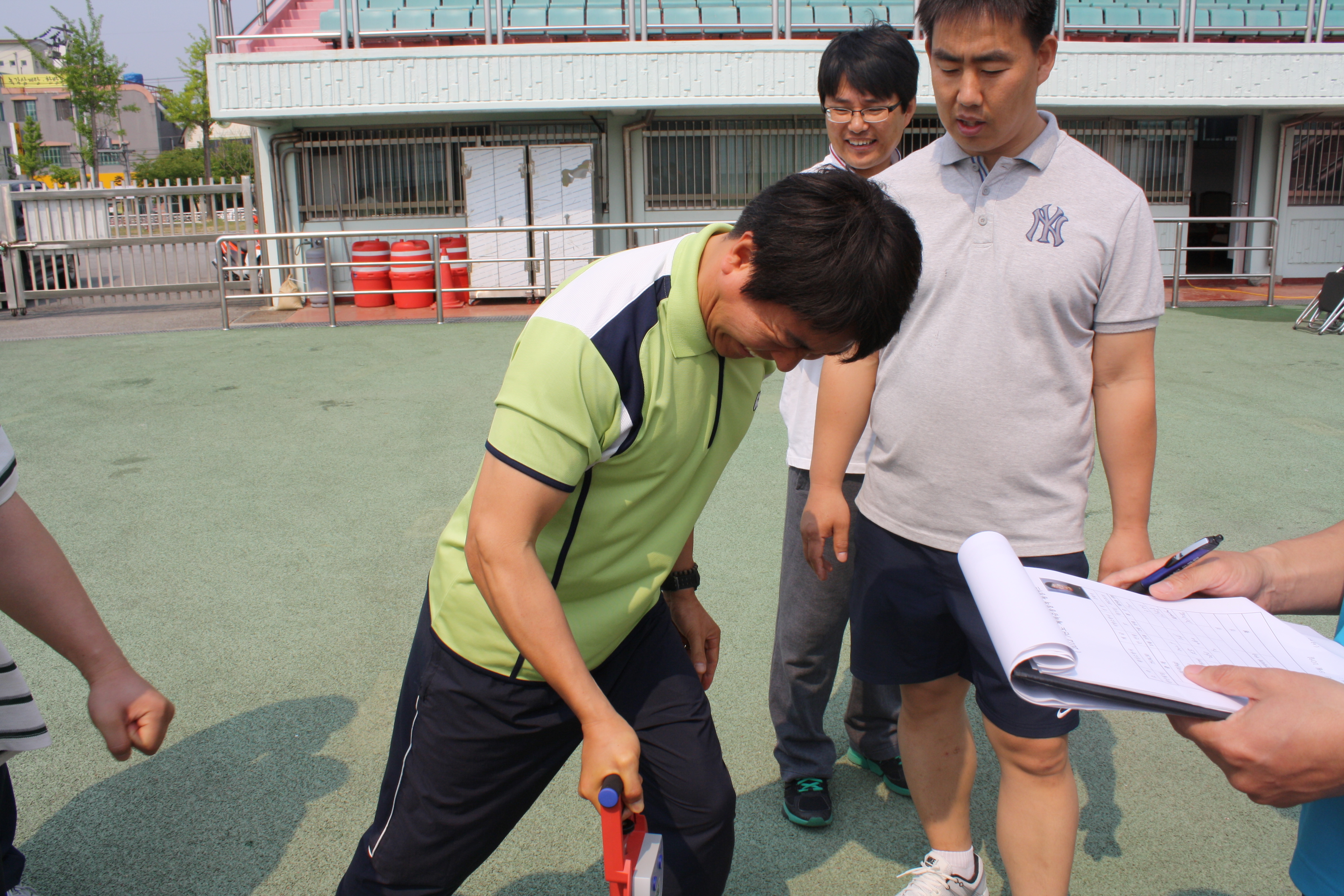 재난현장의 효과적 대응을 위해 필요한 체력을 측정하기 위한 이번 체력검정은 ▲악력 ▲배근력 ▲앉아윗몸앞으로굽히기 ▲윗몸일으키기 ▲제자리멀리뛰기 ▲왕복오래달리기 등 6개 종목에 대하여 실시했으며, 측정된 기록은 개인별 체력검정 기록카드의 기록관리 및 근무성적 평정 등 인사관리의 자료로 활용됩니다.
