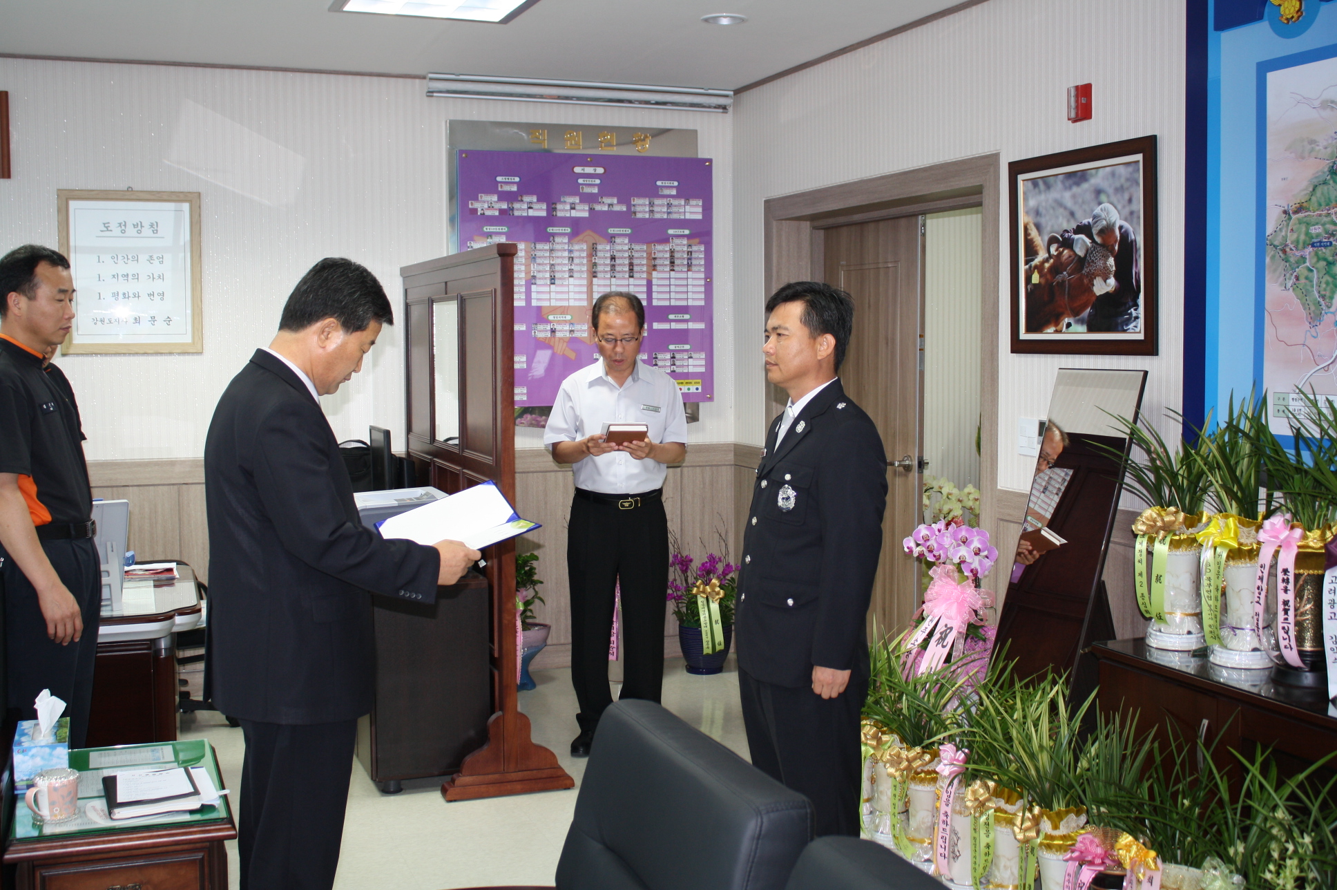 횡성소방서(서장 정은철)는 서장실에서 7월 5일자 소방위 승진자(김학중)에 대하여 임용장 수여를 실시했다. 서장님께서는 맡은 바 임무에 충실해 줄것을 당부했다