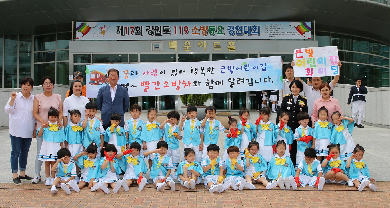 6.16일 원주 백운아트홀에서 개최된 제17회 강원도 119소방동요경연대회에 우리 소방서에서는 큰빛어린이집 어린이들이 출전하여 은상을 받아왔습니다.